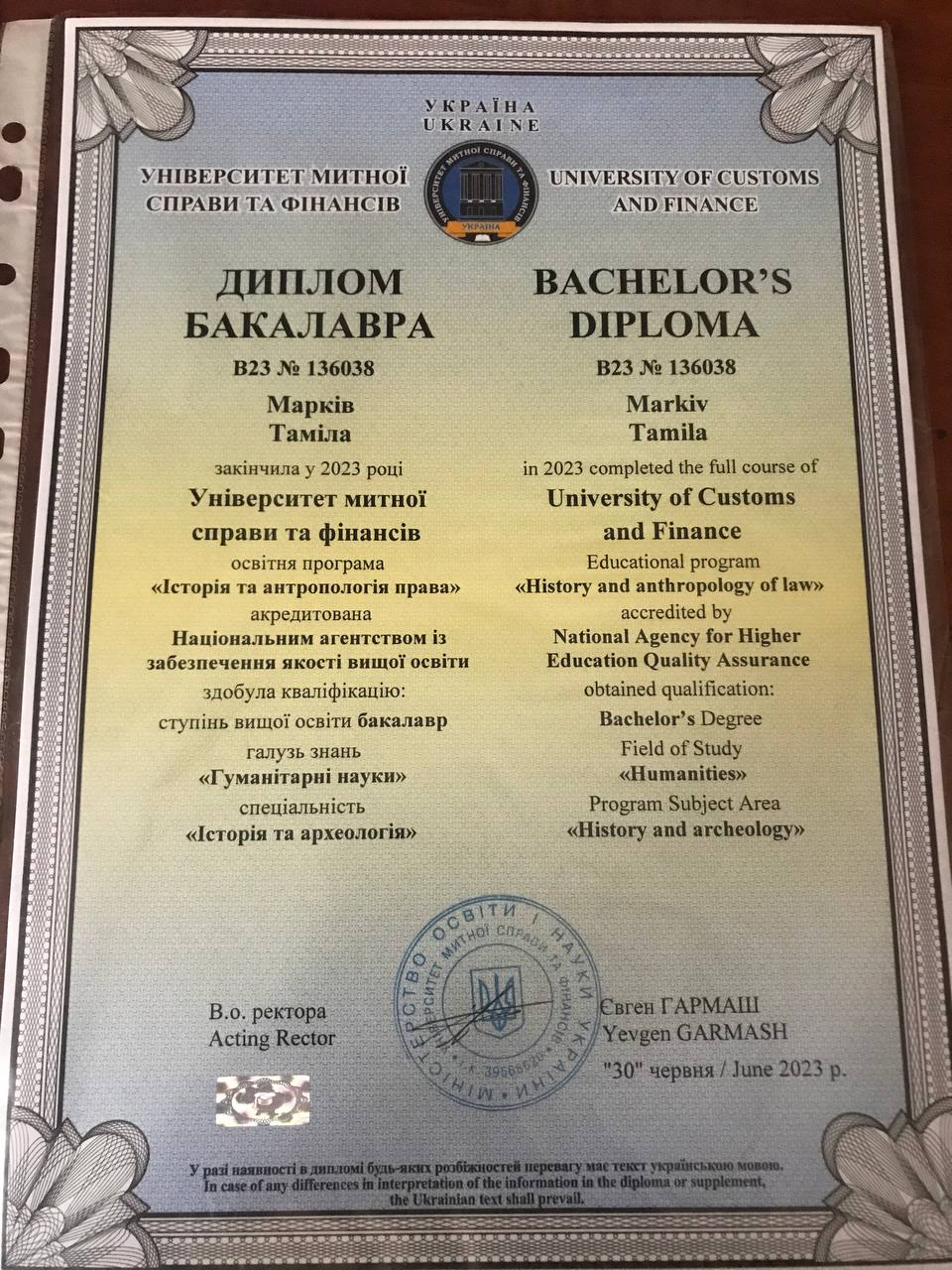 Привет! Меня зовут Тамила, и я ваш репетитор по истории Украины. Мое пристрастие к истории подкреплено академическим образованием: в 2023 году я окончила Университет таможенного дела и финансов по специальности "История и археология" (бакалавр), а в 2025 году получила степень "Магистра" в Харьковской гуманитарно-педагогической академии.
