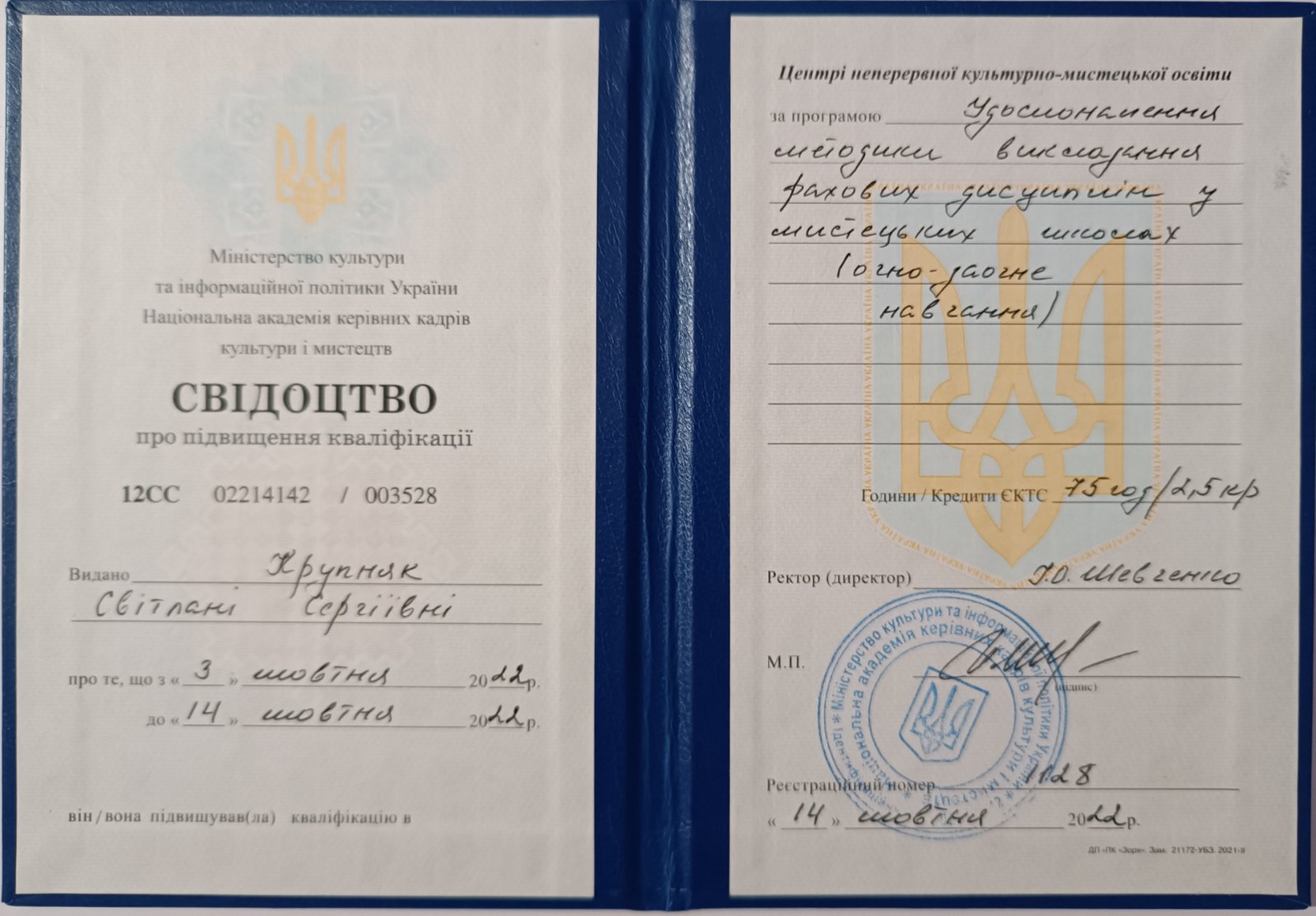 • Более 10 лет преподавания в Николаевской детской музыкальной школе №5
