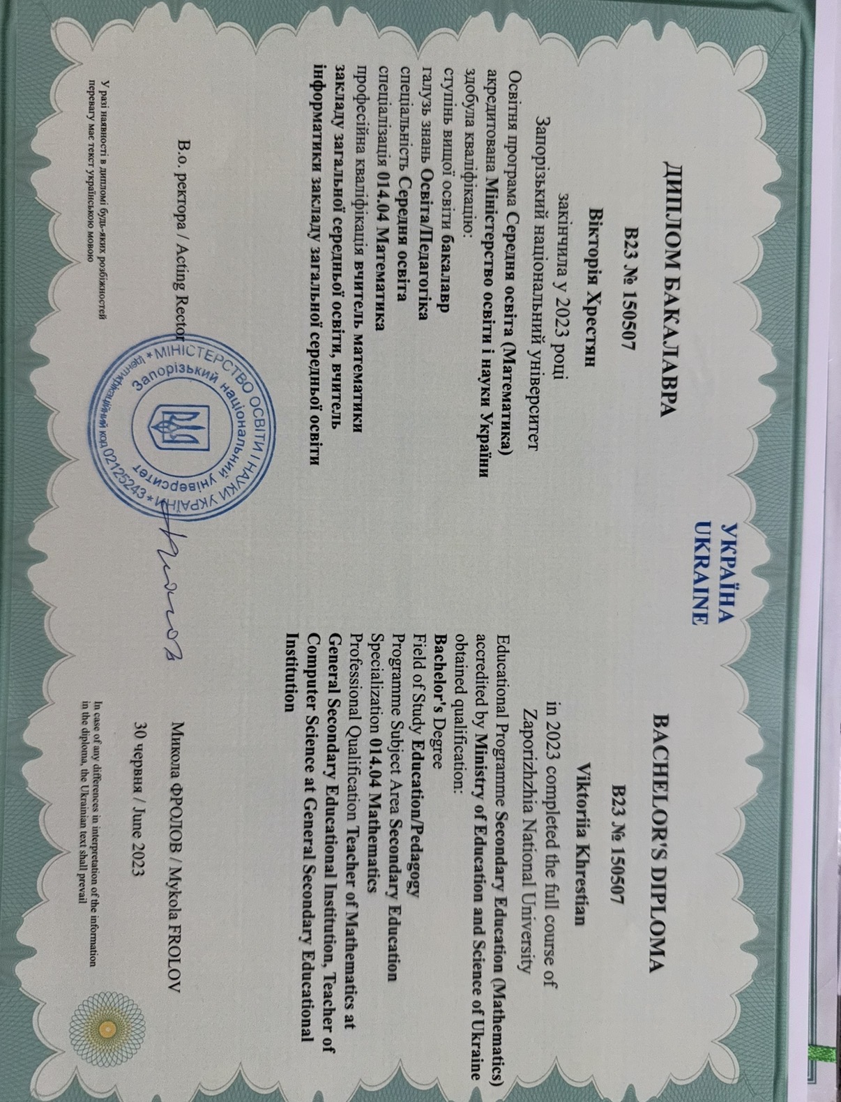 Репетитор по математике, закончила бакалавриат в 2023 году. Но работаю уже три года. Работаю в школе, параллельно занимаюсь репетиторством.