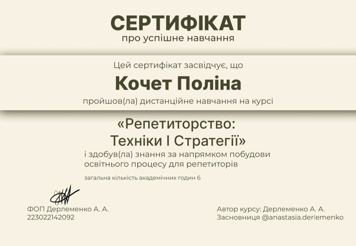 Приветствую! Меня зовут Полина, и я профессиональный преподаватель английского языка с опытом более 4 лет. Я помогаю детям, подросткам и взрослым учить английский легко, интересно и результативно. • Программа адаптирована под ваши потребности и цели • Современные материалы • Четкая структура для быстрого результата • Эстетические и теплые занятия, мотивирующие учиться