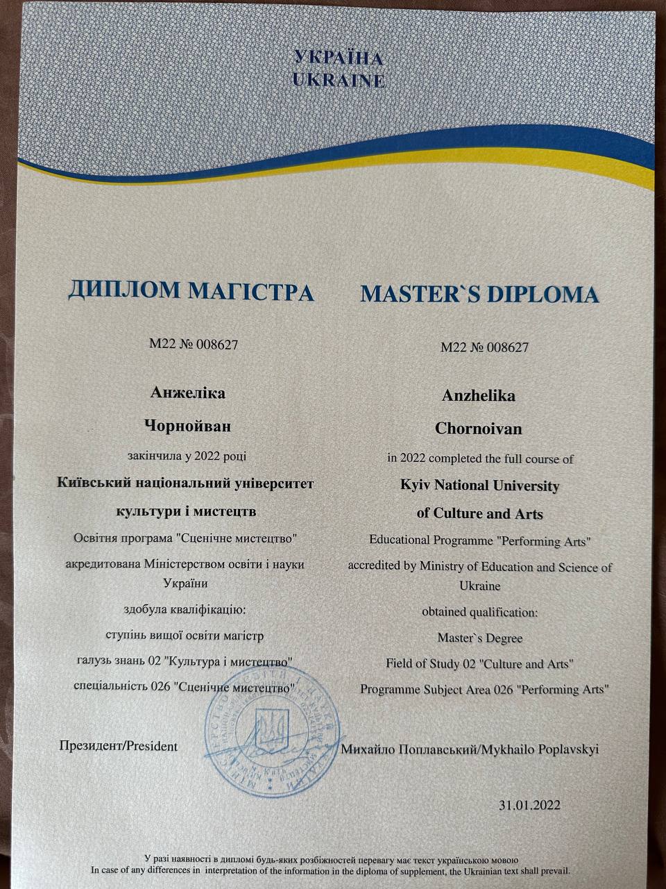 Преподаватель актёрского мастерства театра и кино, актриса, режиссёр, актёрский коуч. С 2022 года — преподаватель кафедры режиссуры и мастерства актёра КНУКиМ. Преподаю актёрское мастерство, психофизический тренинг, биомеханику, пантомиму и импровизацию, режиссуру и актёрское мастерство в хореографии. С 2025 года — преподаватель КМАЕЦМ.