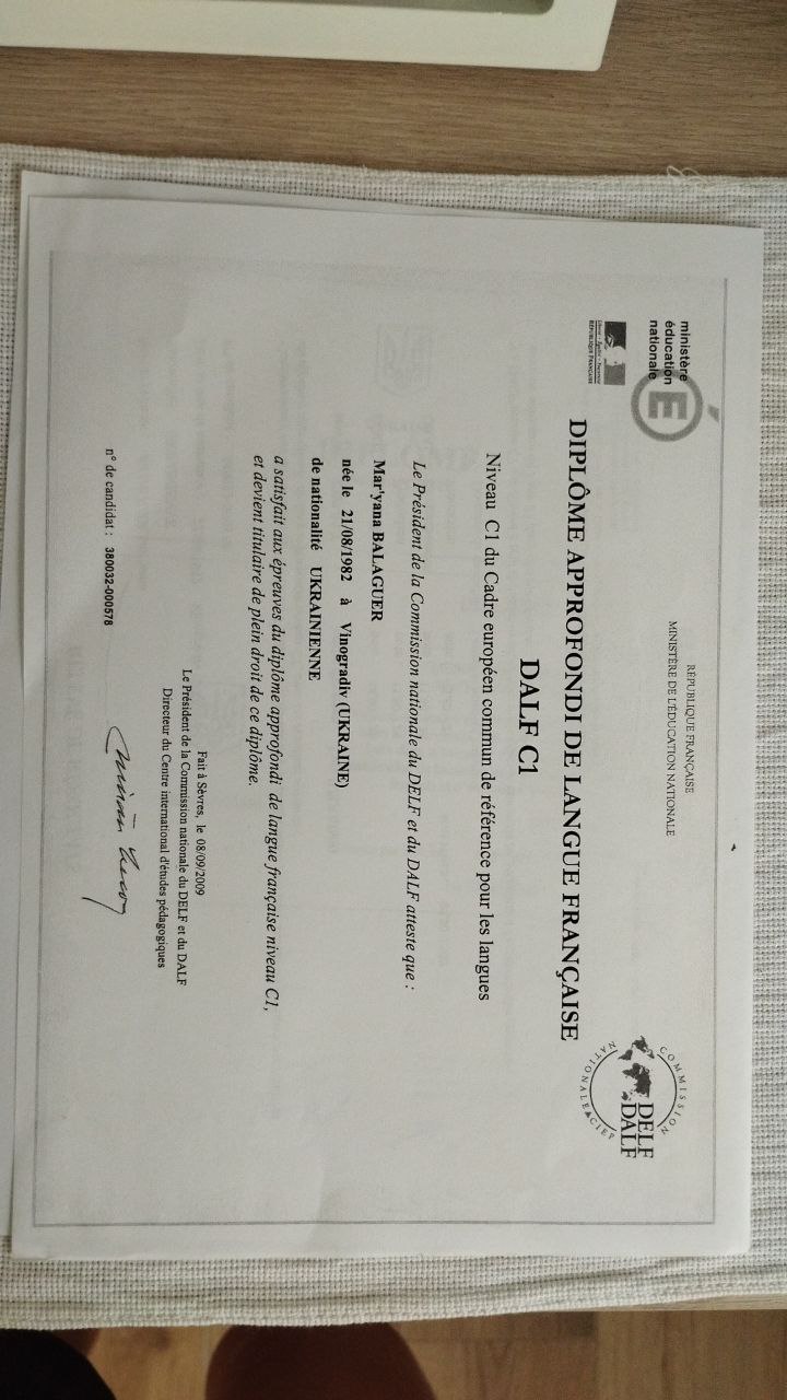 Здравствуйте! Я дипломированный преподаватель французского языка, сертифицированный на уровне DALF C1. Работаю с уровнями A1–C1, включая подготовку к DELF/DALF. Моя методика — структурированная, практичная и ориентированная на живой язык. Помогаю заговорить по-французски уверенно и без языкового барьера.