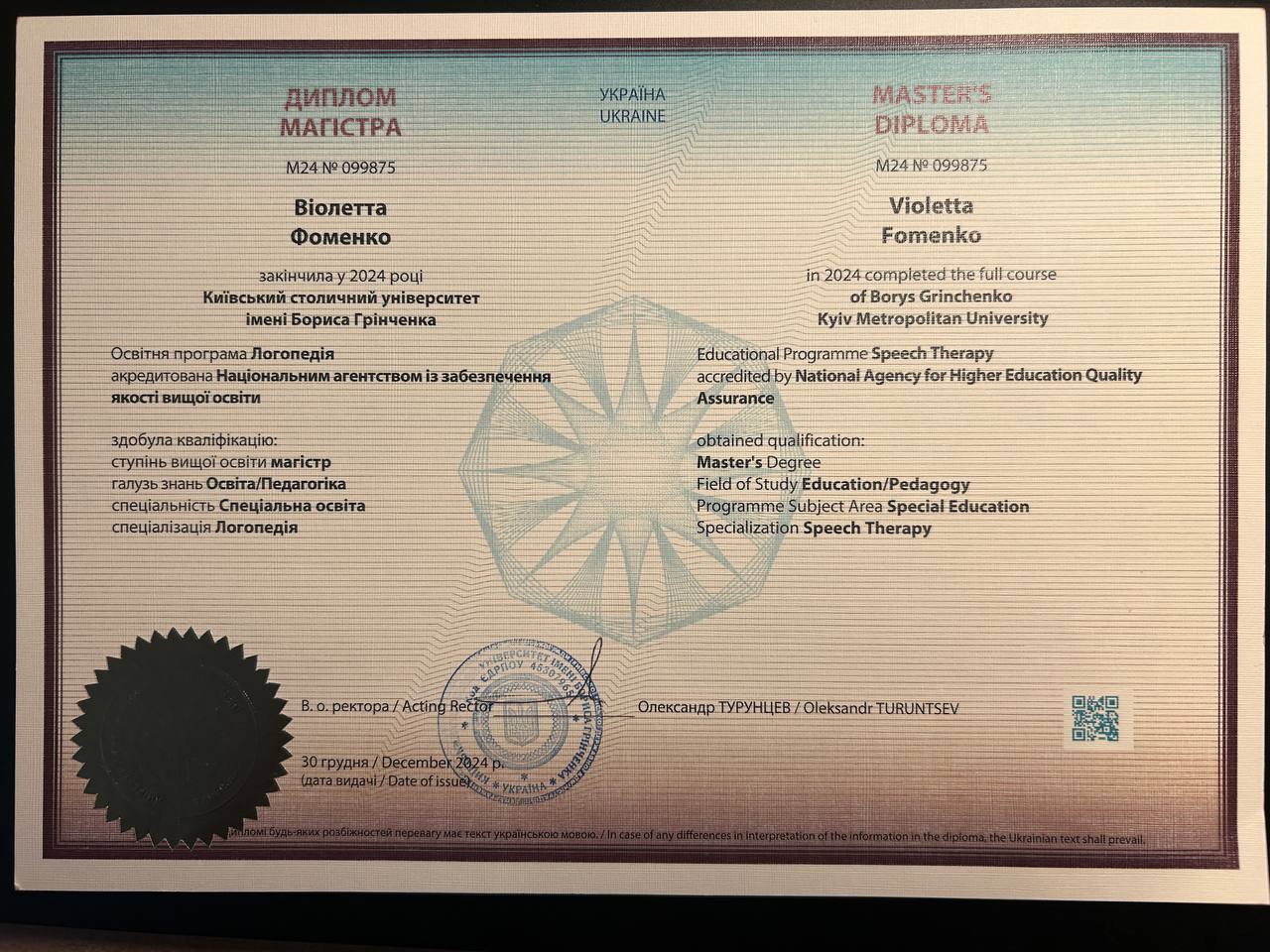 Я работаю комплексно: от дыхания и тонуса мышц до правильной автоматизации звука в речи. Каждому ребенку предлагается индивидуальный план коррекции. Я объясняю родителям, что и зачем мы делаем, и даю четкие рекомендации для дома. Я работаю мягко, без принуждения — с уважением к ребенку и его темпу.