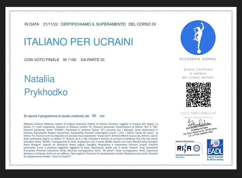 Кратко обо мне: – родилась в 1995 году; - с 2001 г. по 2012 г. училась в школе; - с 2012 г. по 2016 г. училась в университете; - с 2016 г. по 2018 г.(это секретная информация 🤣); - с 2018 г. по 2021 г. работала на любимой работе; - в 2021 году вышла замуж и переехала в Италию; - в 2022 году стала мамой прекрасного сыночка☺️