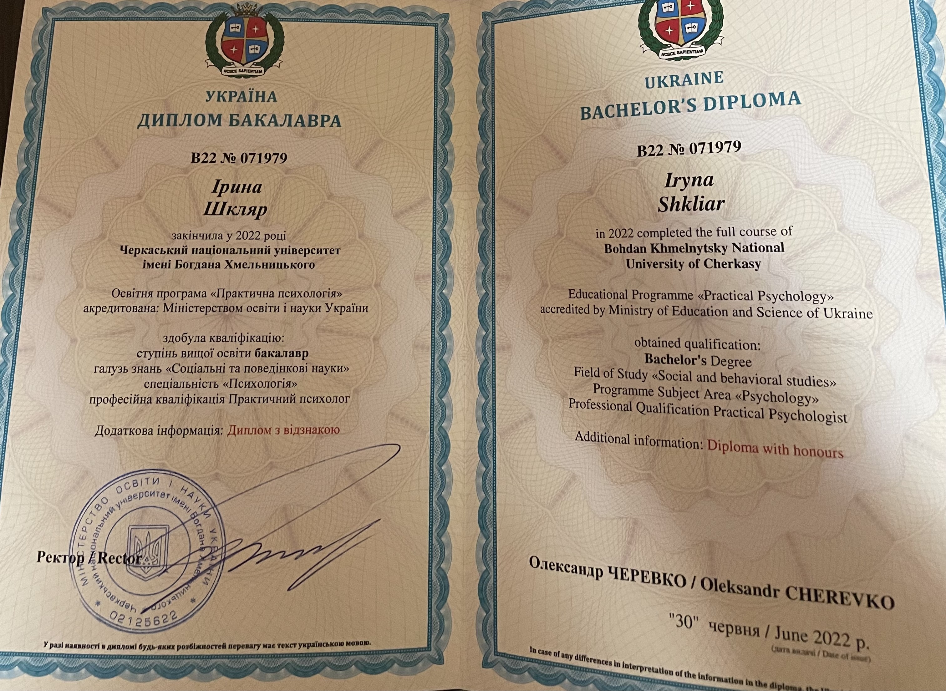 Привет, меня зовут Ира. Я практический психолог (бакалавр) и специалист глубинной психокоррекции (магистр). 5 лет работаю в методе КПТ и психоаналитическом подходе, а также люблю применять в работе метафорические ассоциативные карточки. С уверенностью могу назвать себя "психологом с мягким вмешательством", ведь в своей работе всегда слушаю и слышу клиента.