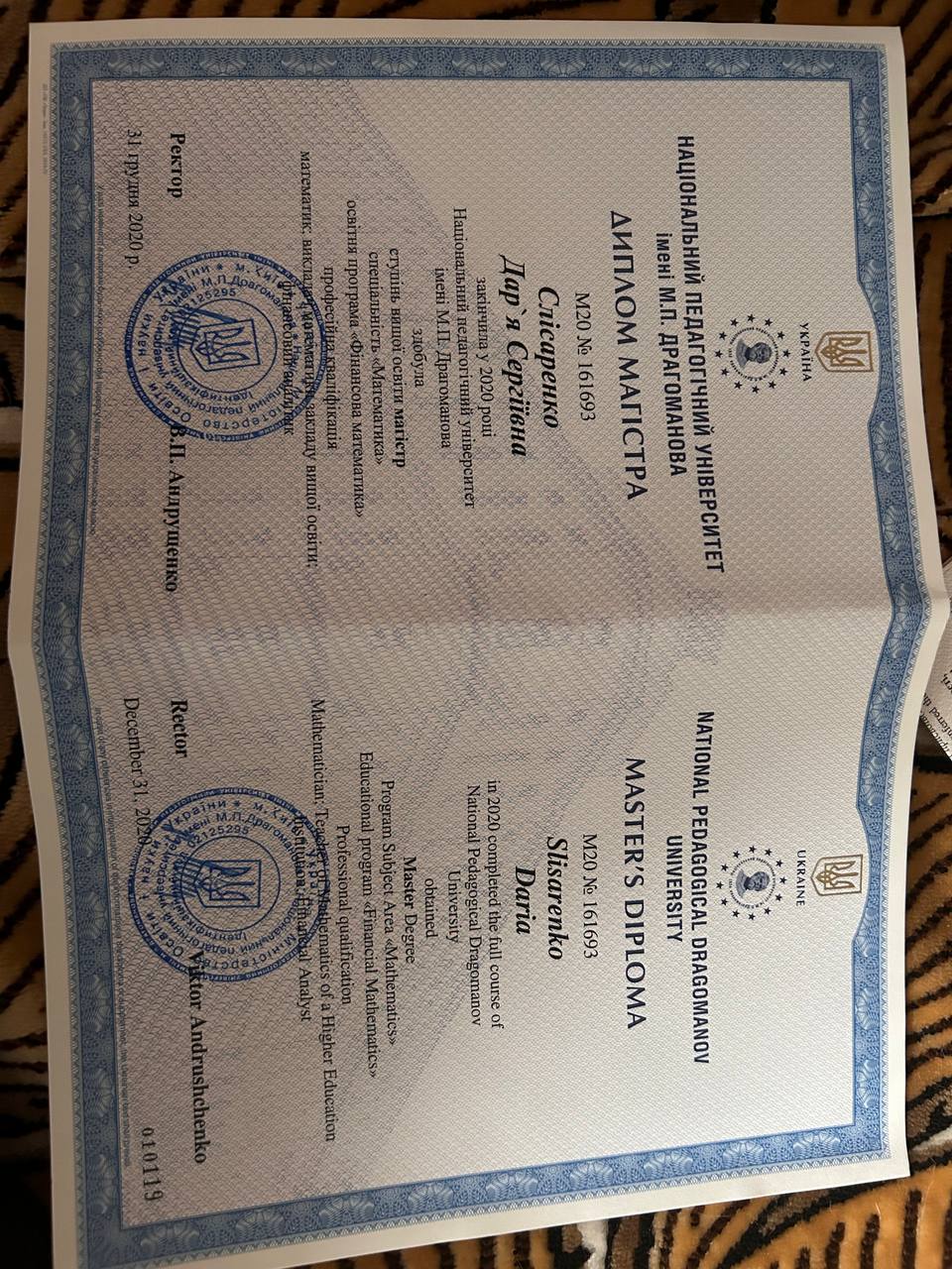 Четыре года дневной формы обучения за плечами, 7 лет работы в школах Хмельницкого и 1 год работы в колледже. А также – 8 лет опыта подготовки поступающих к ВНО и НМТ. Всю свою взрослую жизнь я объясняю математику детям сначала в школе, а после уроков на репетиторских занятиях.