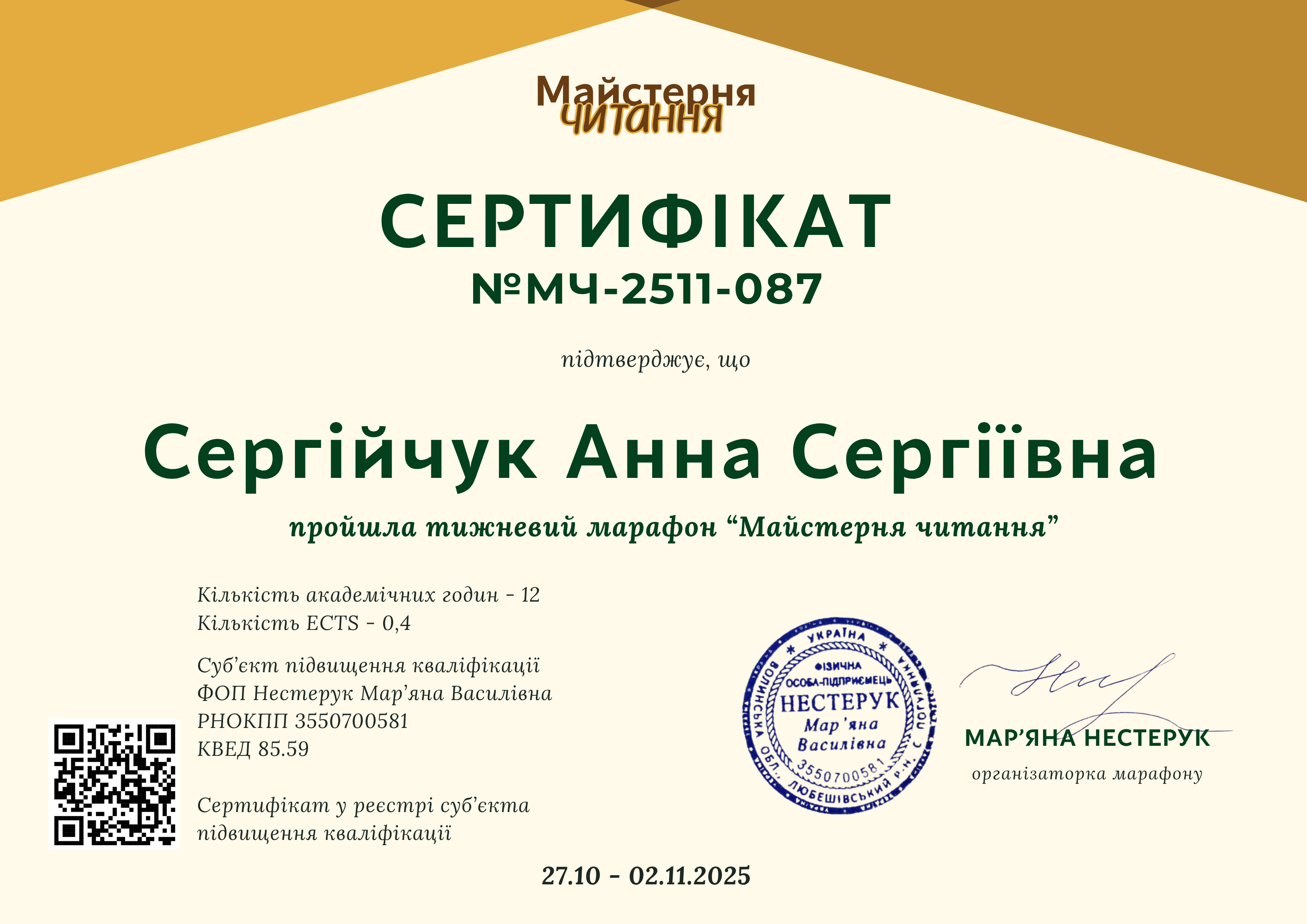 Репетитор, учительница украинского языка и литературы, магистр среднего образования.