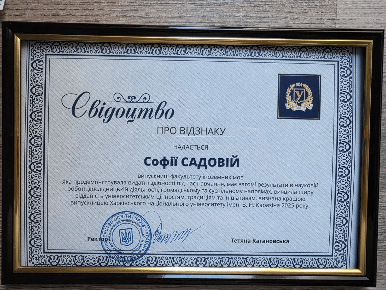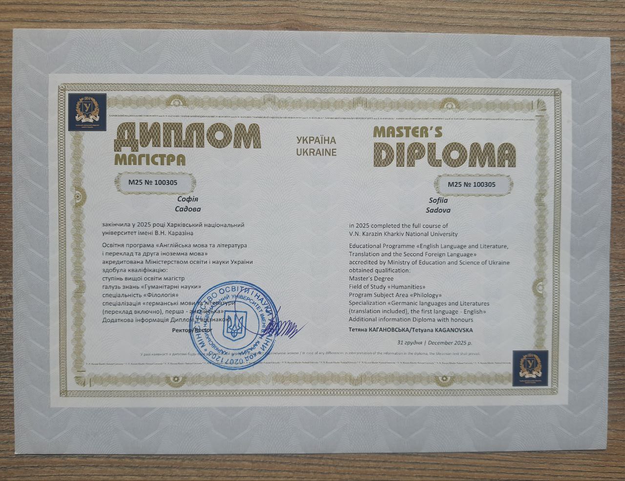 - получила образование в ХНУ им. В.Н. Каразина по специальности "Перевод. Китайский и английский языки".