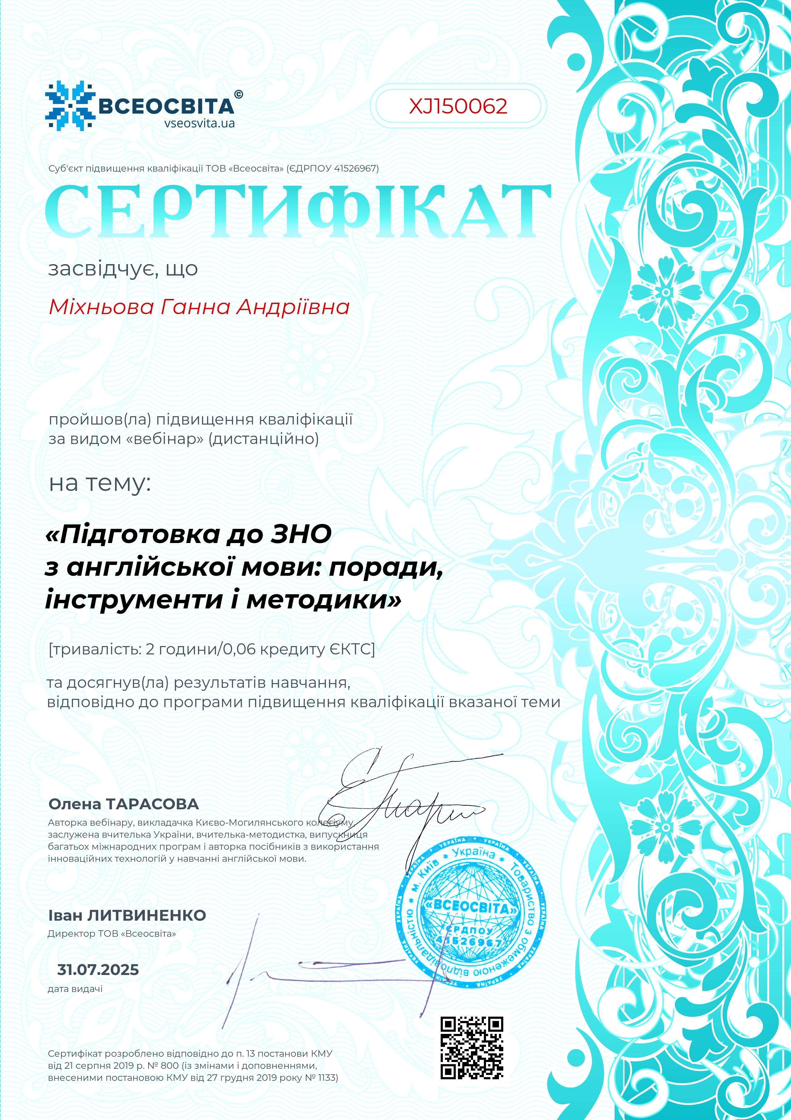 Я окончила Мариупольский государственный университет в 2016 году. Имею степень магистра, преподавателя английского. Опыт работы в школе, лицее и репетитором в Украине (всего 10 лет).