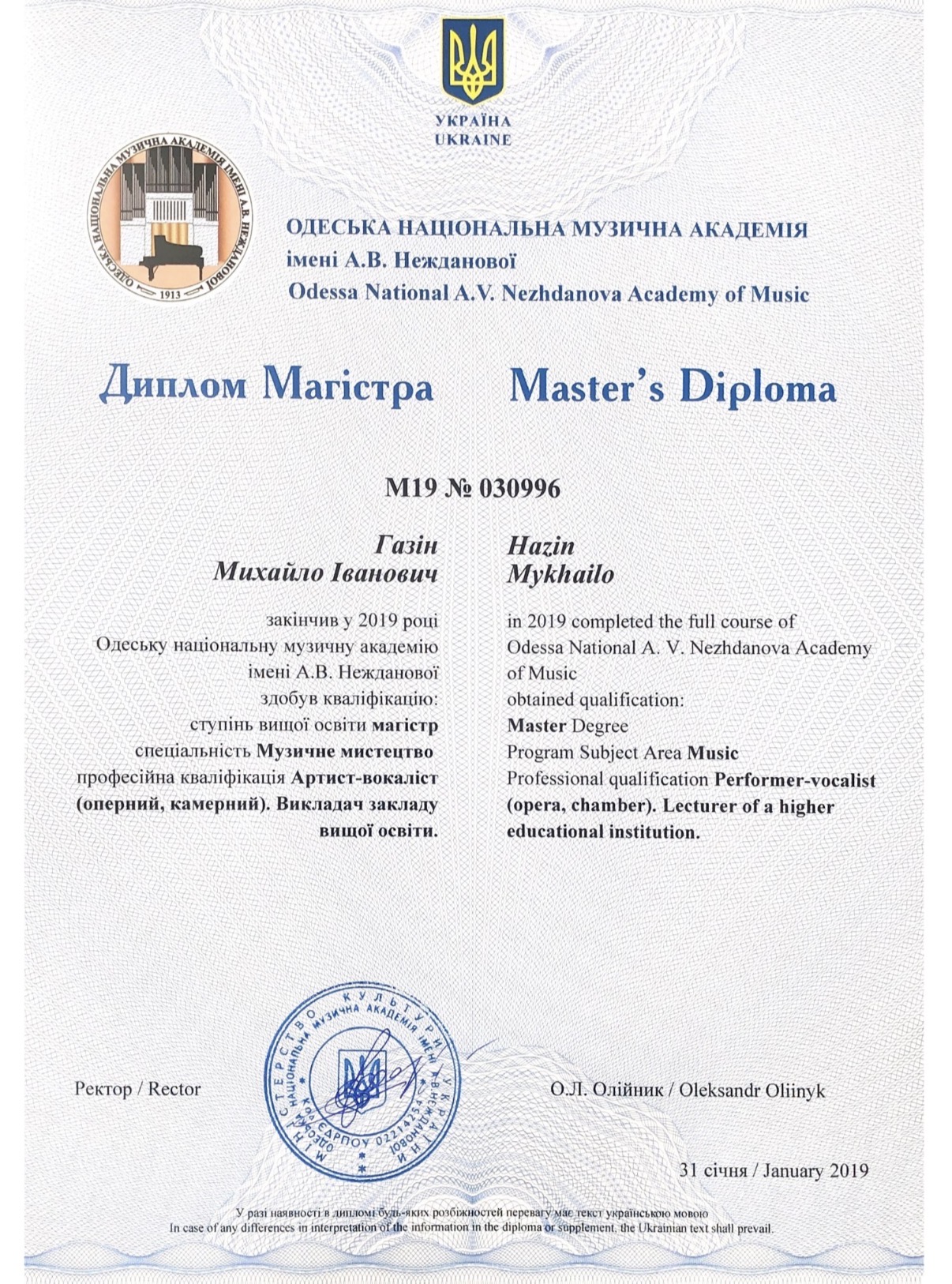 Привет! Меня зовут Михаил и мне 34 года. Живу в Одессе, профессиональный оперный певец и преподаватель академического вокала. Люблю путешествовать, обожаю читать фэнтези и не только. У меня уже богатый опыт гастролей по странам Европы, Великой Британии и даже Саудовской Аравии. Люблю участвовать в различных проектах, не боюсь экспериментировать.
