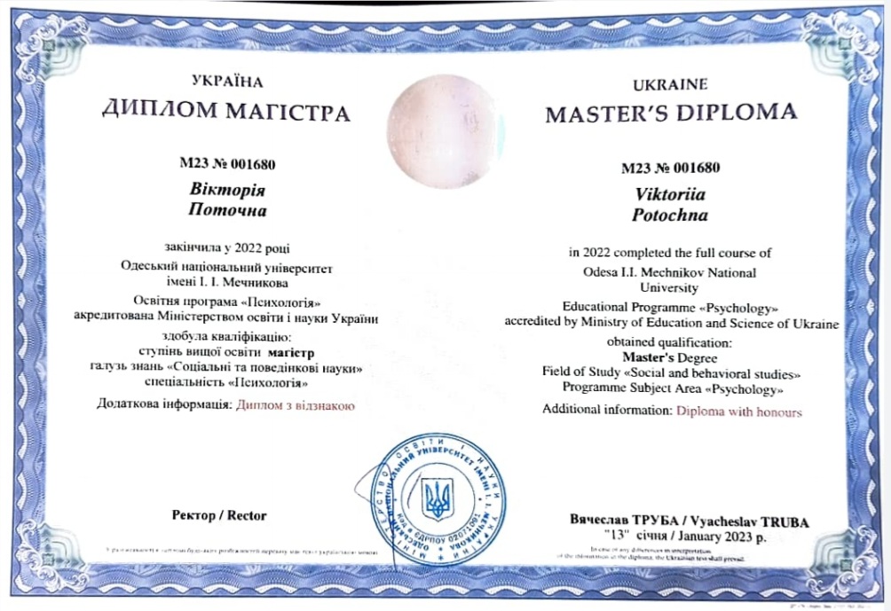 Закончила Одесский национальный университет имени И.И. Мечникова
