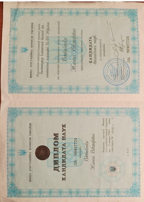 - НУБиП (Национальный университет биоресурсов и природопользования) в городе Киеве, старший научный сотрудник, преподаватель кафедры генетики и селекции растений,