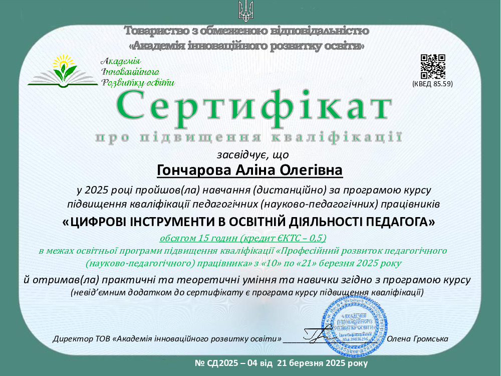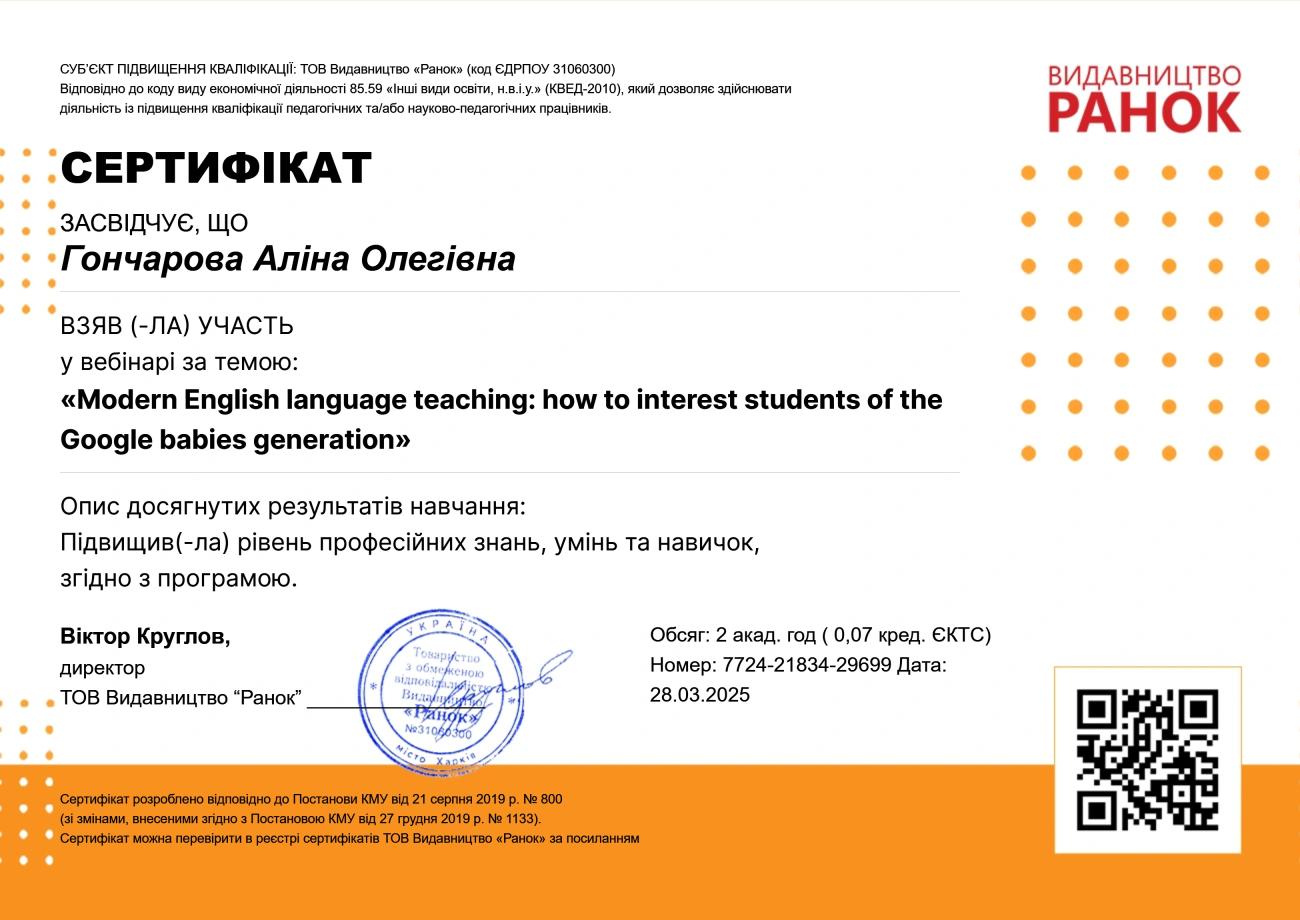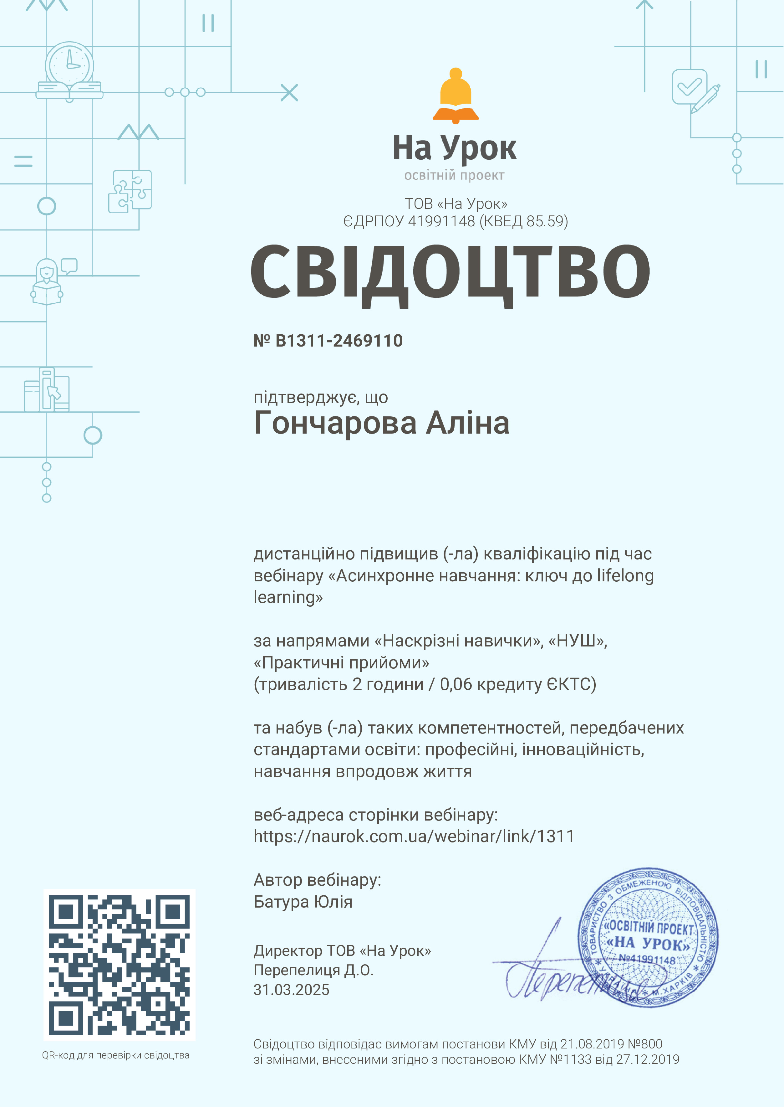 Постоянно прохожу курсы повышения квалификации, совершенствую свои методики и внедряю современные образовательные идеи.