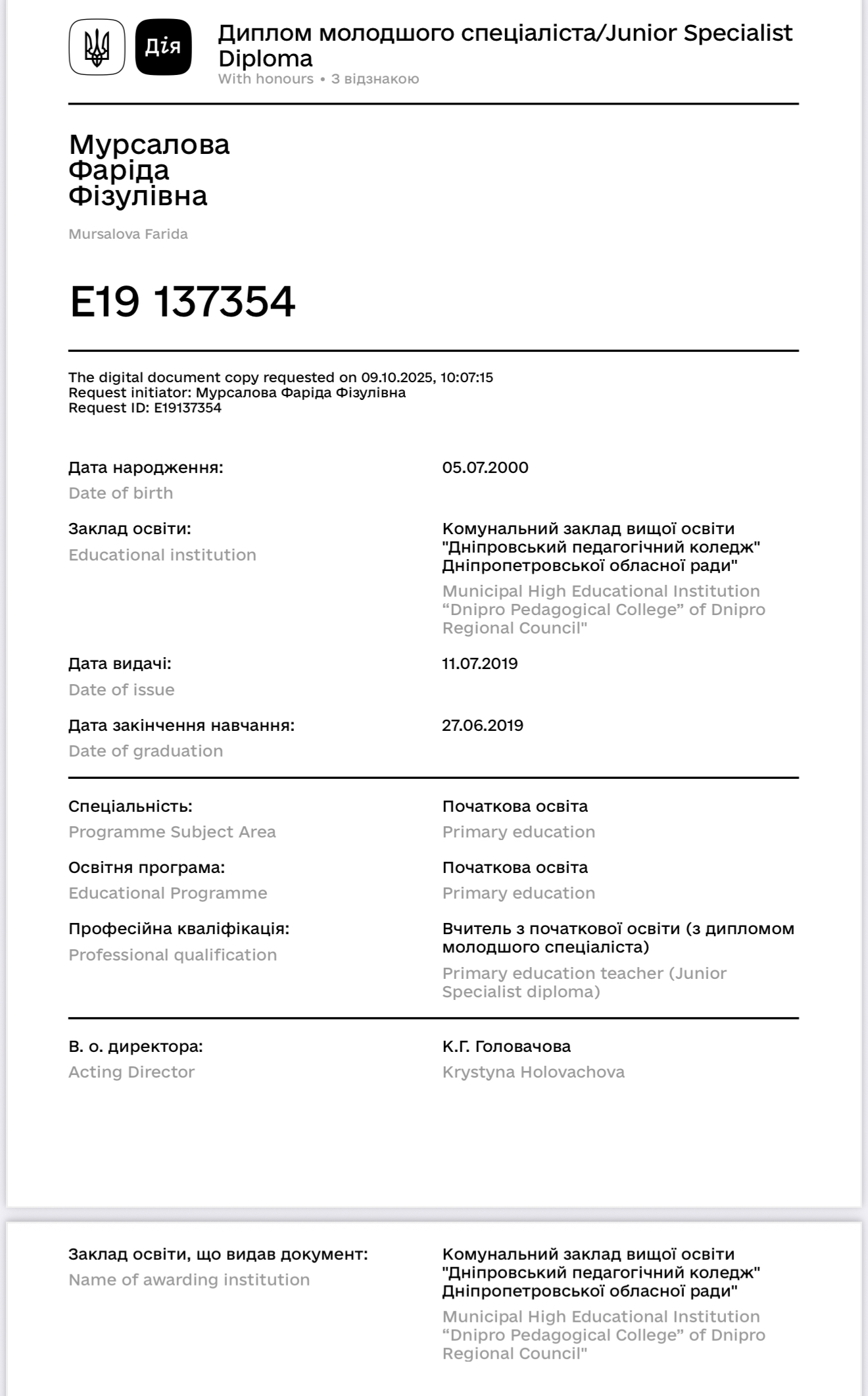 У меня высшее педагогическое образование и более 5 лет опыта работы с детьми начальной школы. Я работаю только онлайн, использую современные методики, интерактивные и игровые подходы, чтобы обучение было интересным и понятным. Каждое занятие я строю индивидуально под потребности ребенка. Ученики улучшают знания, развивают чтение, письмо, логику и уверенность в себе. Я работаю с подготовкой к школе, украинским языком, чтением и письмом.