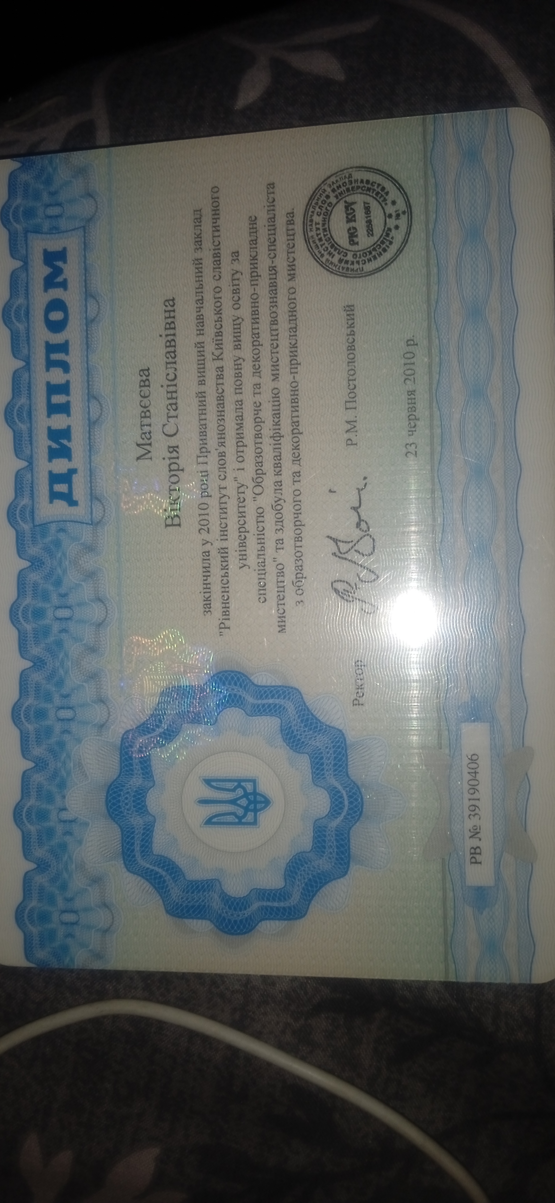 Получила два высших образования по направлениям истории, филологии и культурологии. Также более 30 лет преподавала в университетах Ровно. В 2010 году получила степень кандидата исторических наук по направлению военная история при Львовском политехническом университете "Львовская политехника". Опубликовала ряд статей и монографию. Хочу заняться репетиторством в качестве дополнительного дохода.
