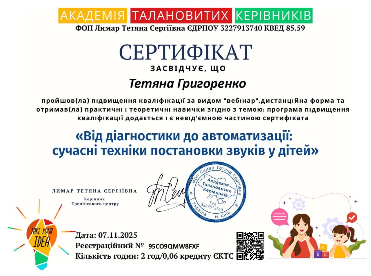 Я - Татьяна, логопед высшей категории, нейропсихолог. Имею высшее образование по специальности «Логопедия и дефектология», второе высшее образование по специальности Психолог, более 20 лет опыта работы с детьми, имеющими нарушения речи.