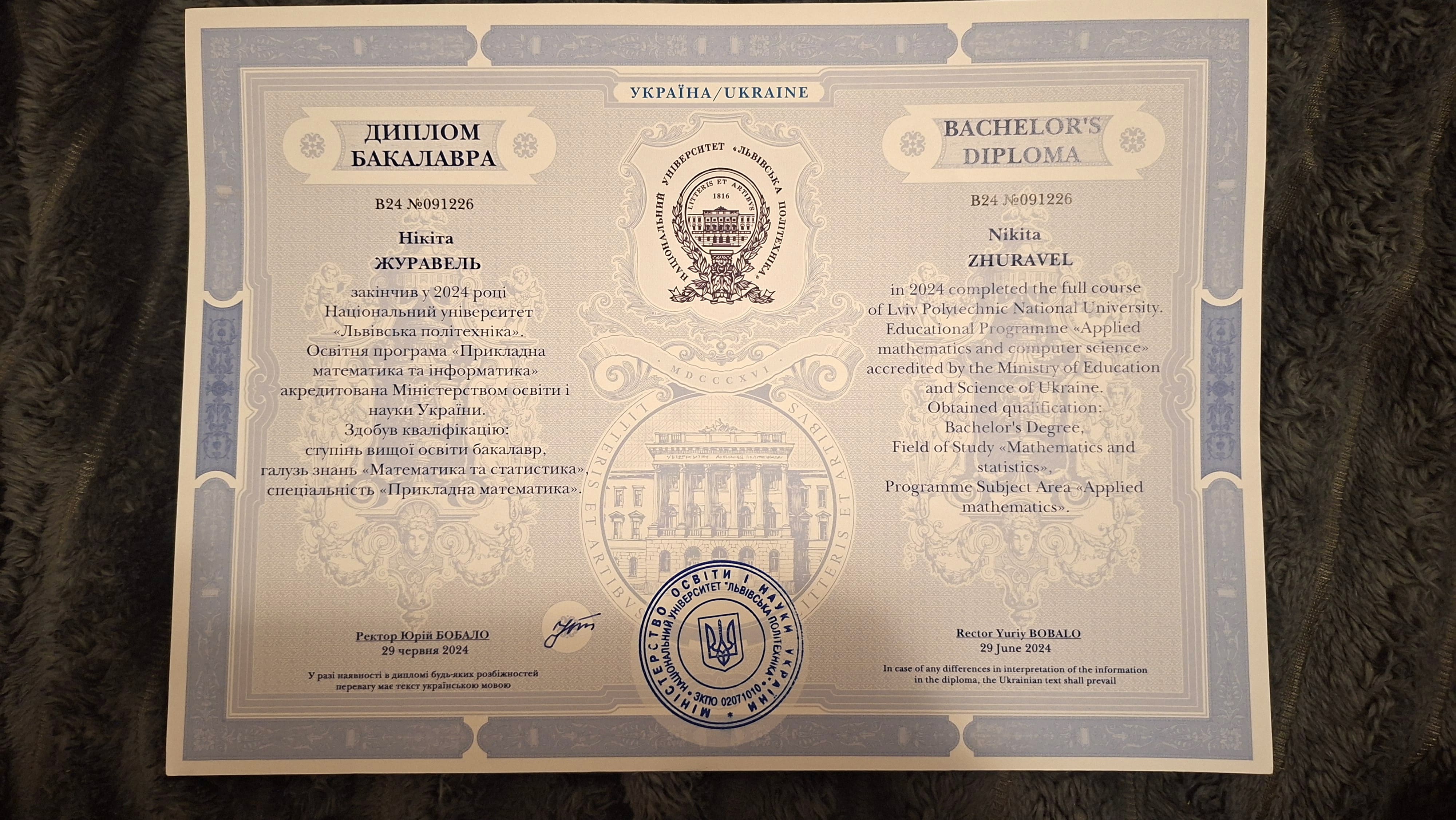 Закончил в 2025 году магистратуру по специальности «Прикладная математика» в НУ «Львовская политехника». Более двух лет помогаю ученикам разных уровней понять математику, а не просто заучивать формулы. Объясняю доступно, спокойно и логично, подстраиваю темп под каждого ученика. Работаю на результат и уверенность ребенка в своих силах, без давления и страха ошибок.