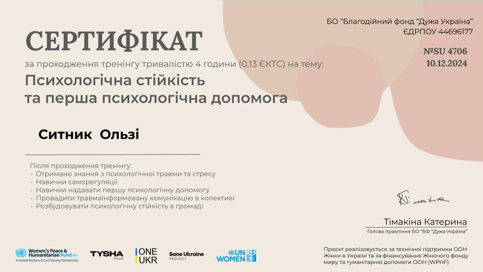 Здравствуйте! Меня зовут Ольга Ивановна Ситник. Я дипломированный психолог (КПУ) с 15-летним стажем работы в специализированном учреждении.