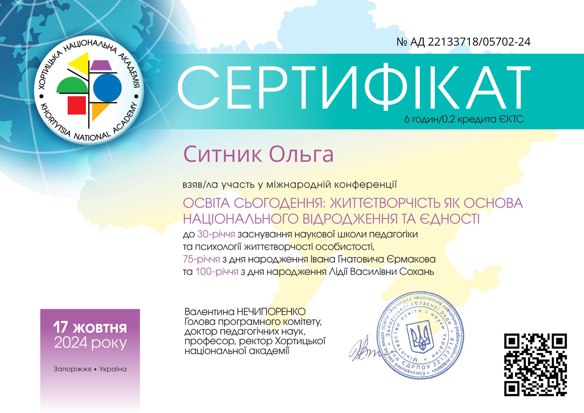 Мои преимущества: Специалист высшей категории, автор научных публикаций по психосоциальному благополучию детей, лауреат всеукраинских конкурсов.