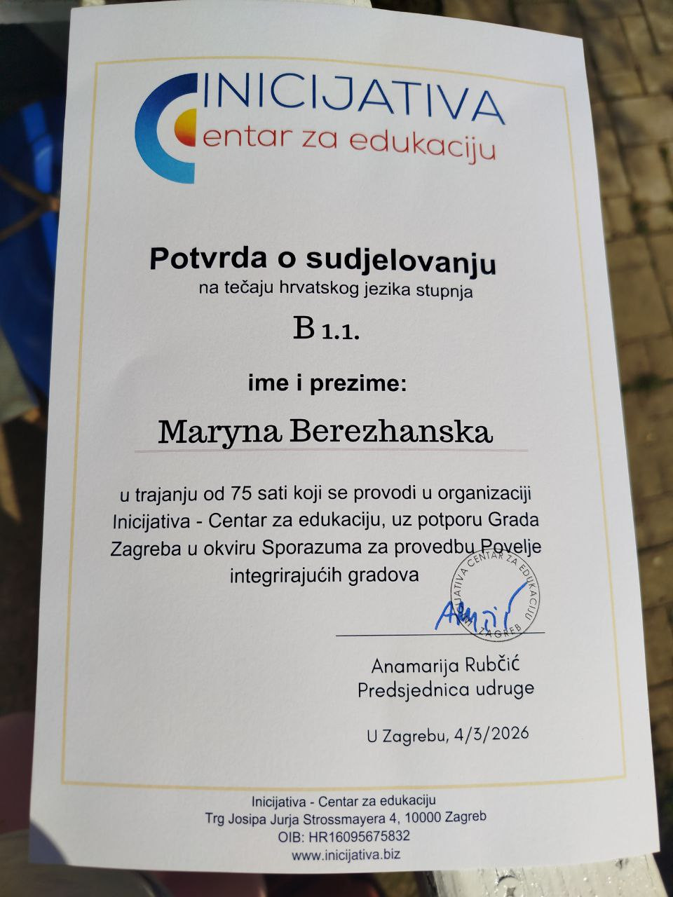 Законченные курсы A2-B1, образовательный центр "Inicijativa", Zagreb. Онлайн курсы, А2, Croaticum.