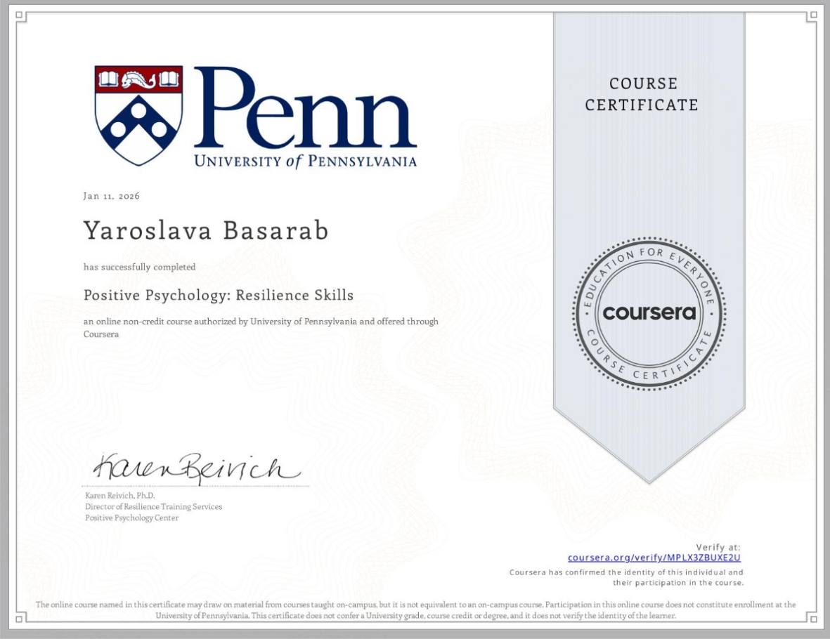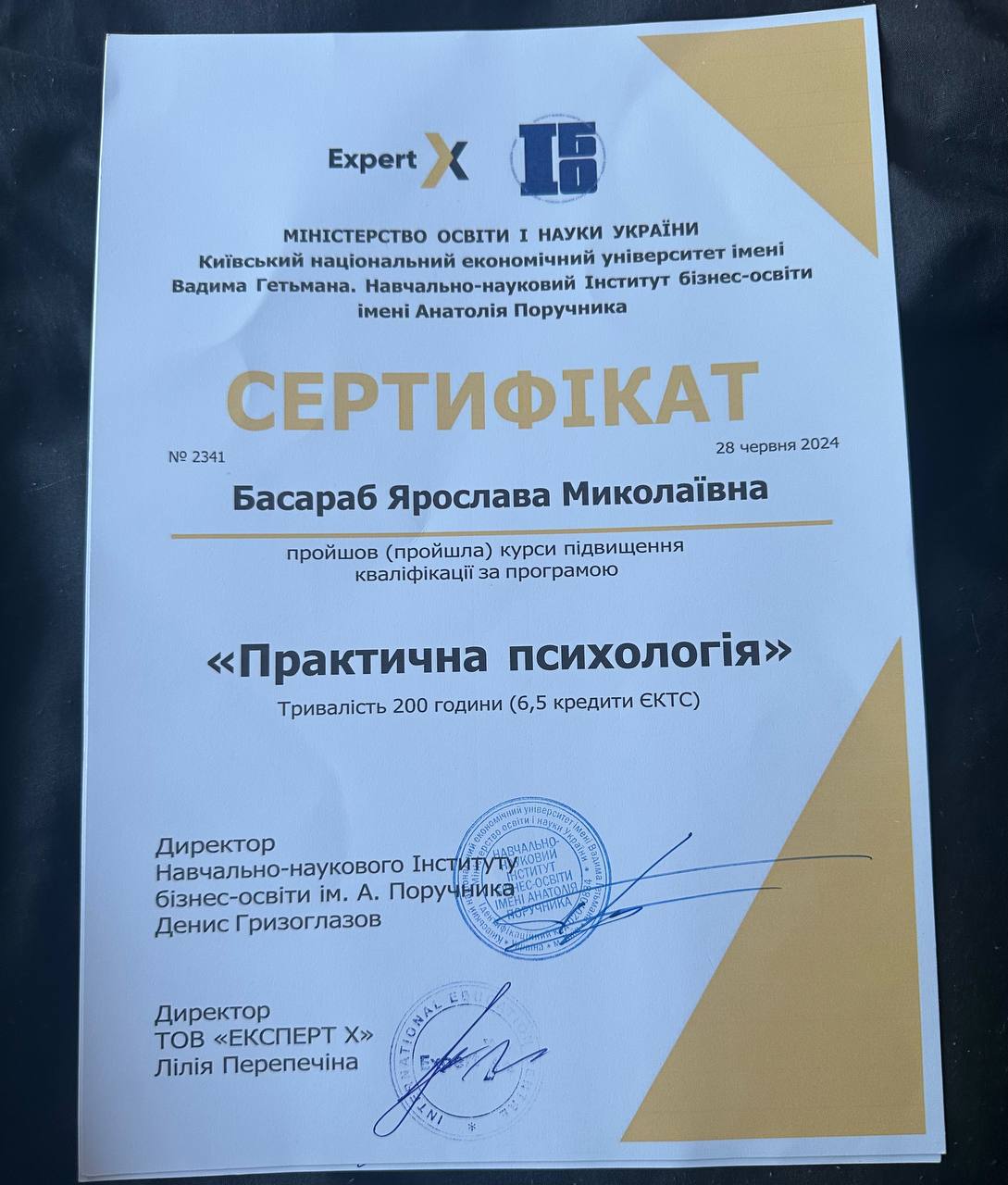 У меня более 400 академических часов профессиональной подготовки в сфере практической психологии и я продолжаю обучение в Великобритании (Bath Spa University, Applied Business Psychology). В работе использую элементы гештальт-подхода, техники эмоциональной регуляции, телесно-ориентированные практики и инструменты позитивной психологии.