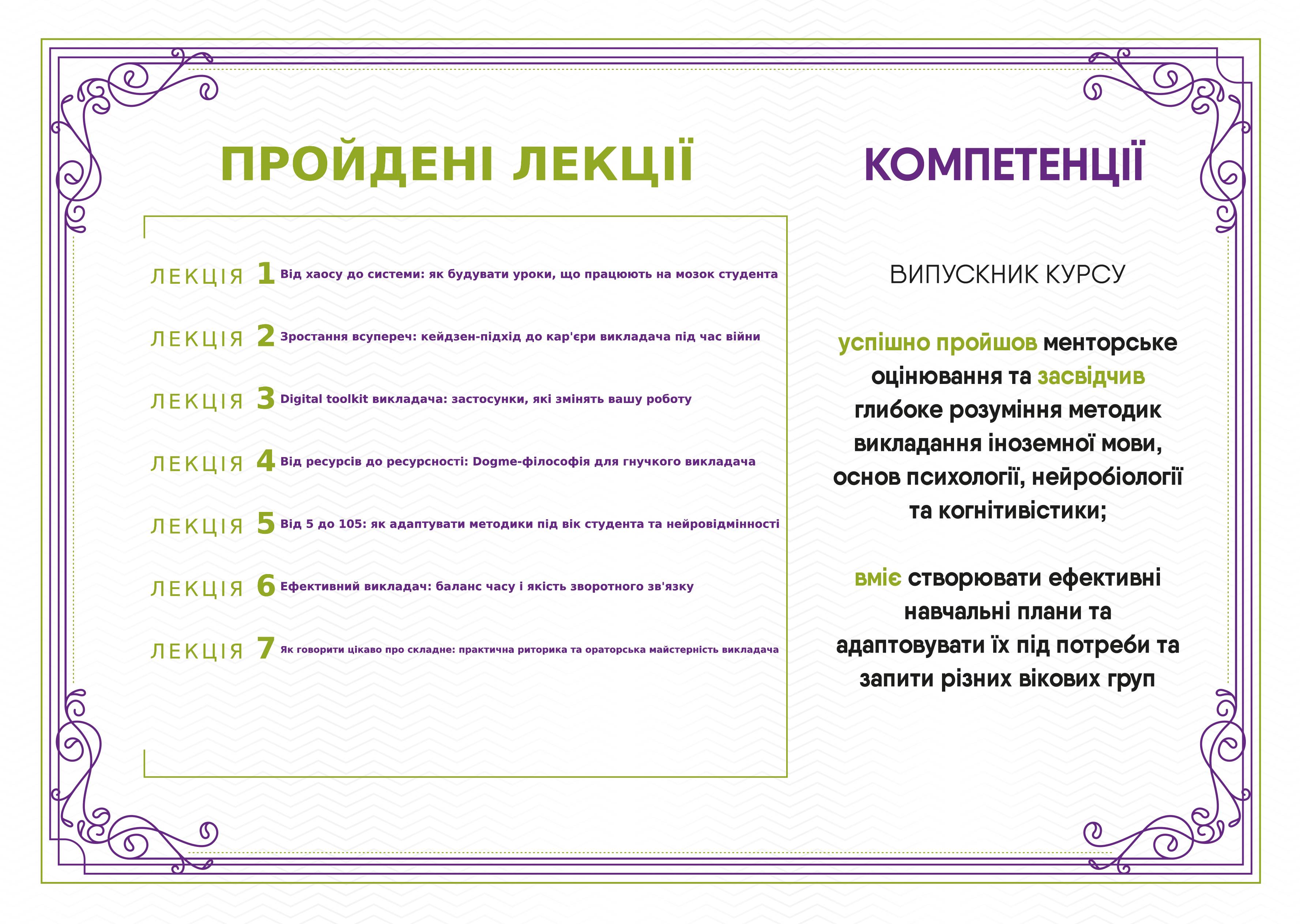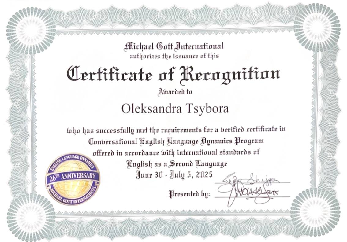 У меня есть опыт работы непосредственно с иностранцами. Также провожу для них уроки украинского. Кроме того, прошла курсы для преподавателей, где больше узнала о методиках и особенностях работы с разными возрастными группами, так что я уверена, что мы найдем общий язык.