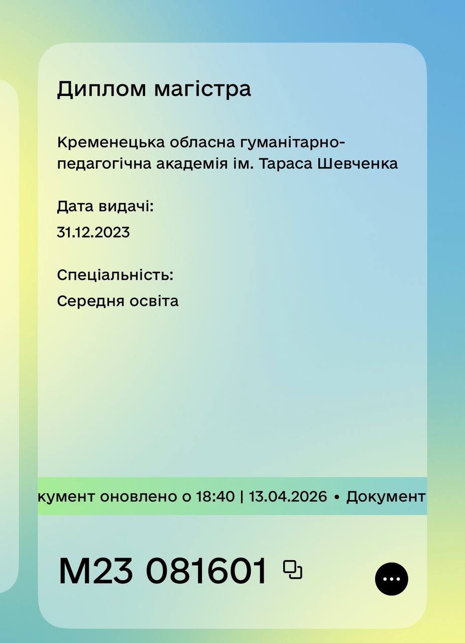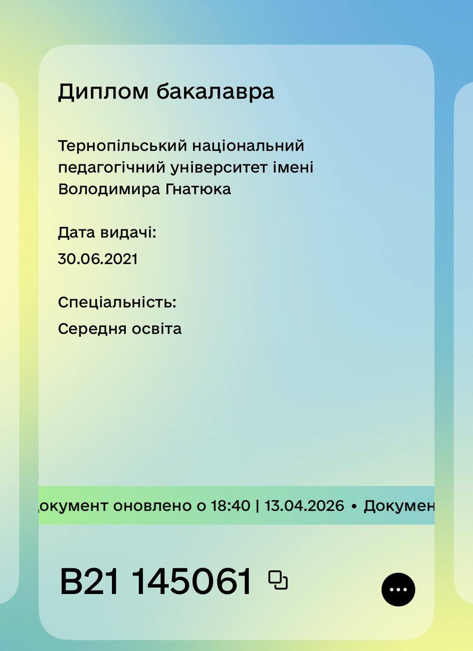 Помогаю ученикам начальной школы догнать программу и уверенно учиться без "білих плям" в знаниях.