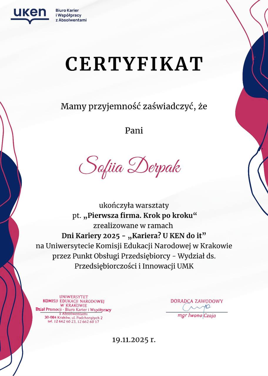Я поляка по происхождению. Выпускница с отличием Украинской гимназии №1 (лицея им. Николы Сабата) в Ивано-Франковске, которая занимает 3 место в рейтинге лучших школ Украины. Студентка в Университете Комиссии Национального Образования в Кракове, прошла собеседование на Карту Поляка, сдала экзамен TELC по польскому на уровне B2. Ежедневно общаюсь с поляками.