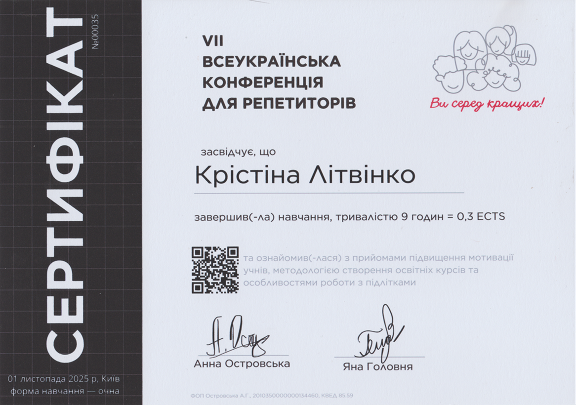 Учу математике уже на протяжении 10 лет, всегда стараюсь совершенствоваться, вводить что-то новое в методах обучения, делать уроки более интересными, адаптироваться к изменениям и получать новые знания.