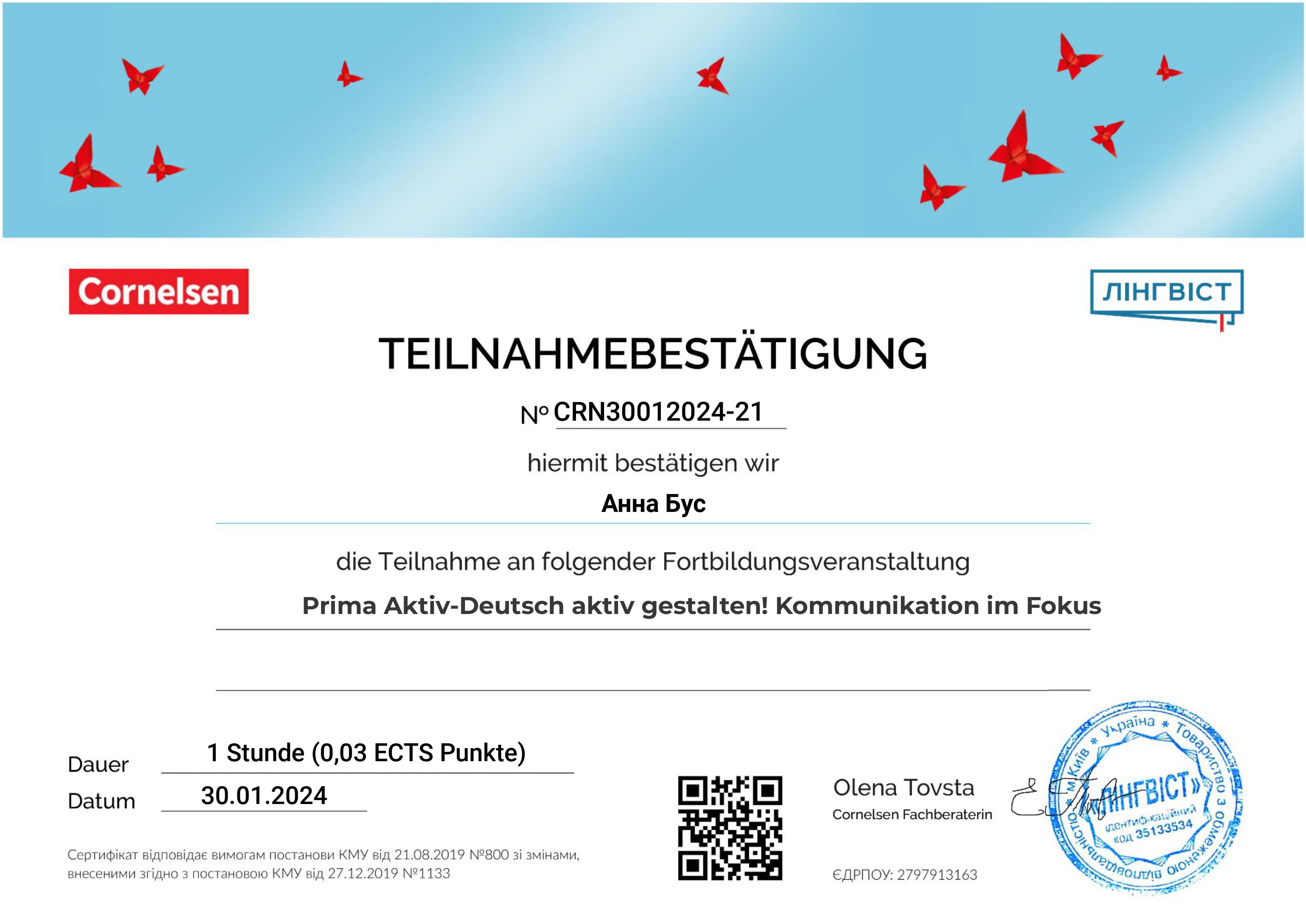 Во время занятий я стараюсь создать комфортную психологическую и непринужденную "дружескую" атмосферу. К каждому учащемуся ищу исключительно индивидуальный подход. Преподавание проходит как на немецком, так и на украинском или русском языках.