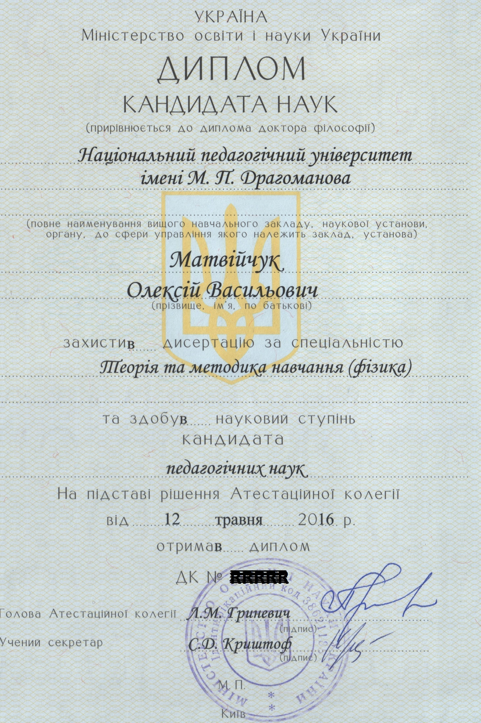 С 2002 года работаю в Национальном техническом университете Украины "КПИ" на должности старшего преподавателя. Практикую преподавательскую деятельность в Политехническом лицее НТУУ "КПИ" с 2006 года, учитель высшей категории. Провожу исследование эффективного взаимодействия общеобразовательной школы и высшего технического учебного заведения при изучении физики. Имею печатные работы и защищенную диссертацию по этой тематике.