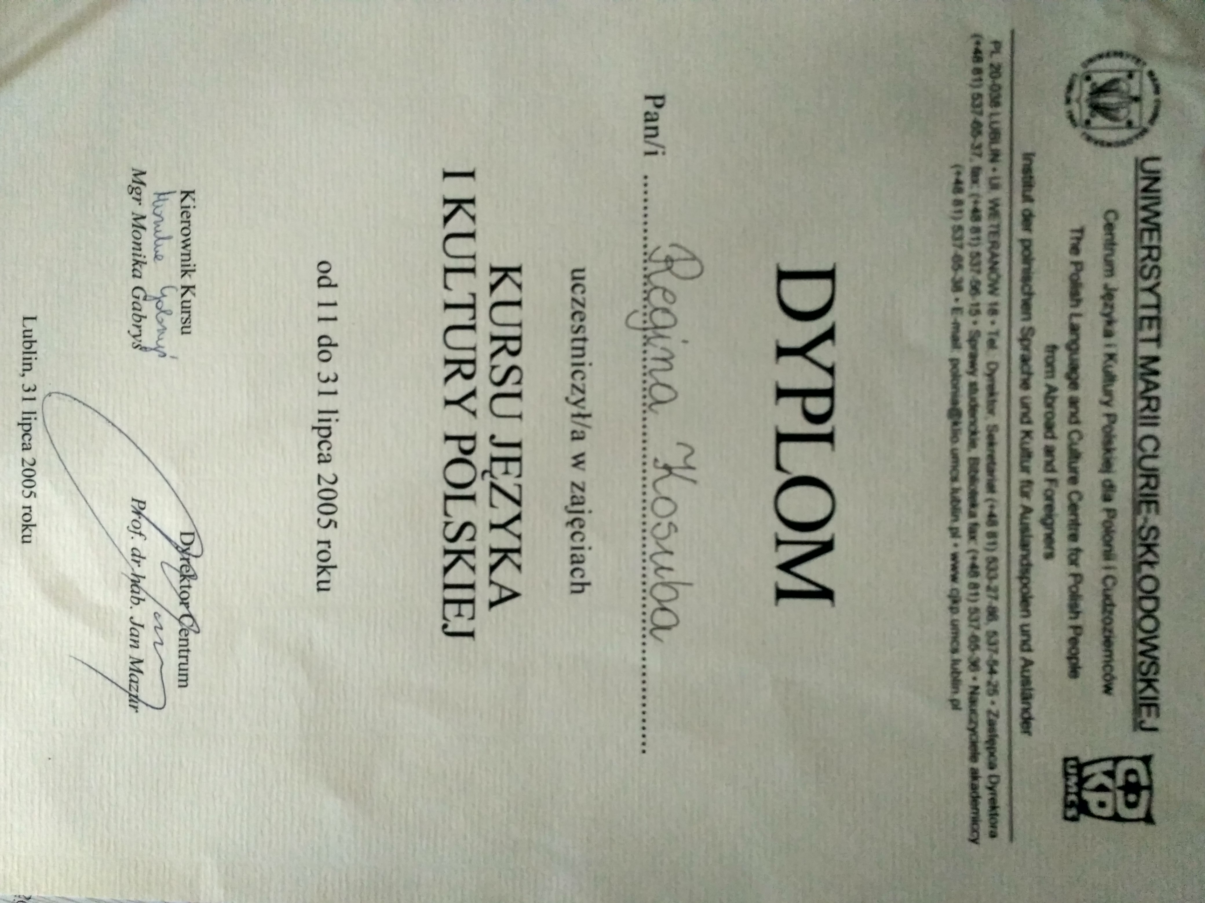 Работаю на знания, умения и навыки в нужном для Вас направлении изучения языка, использую учебники, пособия, интернет-контент и собственноручно созданные материалы для обучения. Не ограничиваюсь только обучением языку, делаю вкрапления из быта и культуры, истории Польши. По желанию студента курс может охватывать системное изучение польской культуры, обычаев, истории.