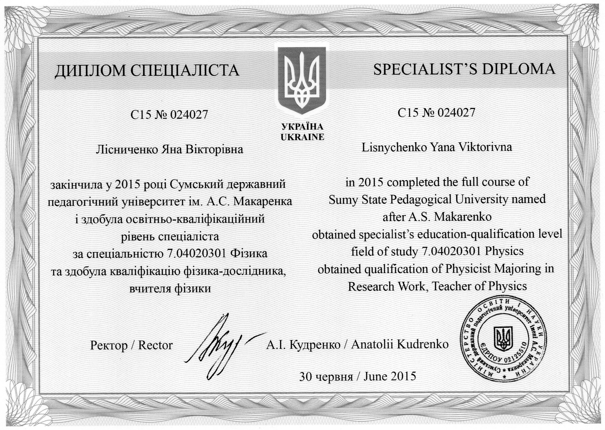 В настоящее время работаю в школе учителем физики. Умею находить подход к каждому ученику.