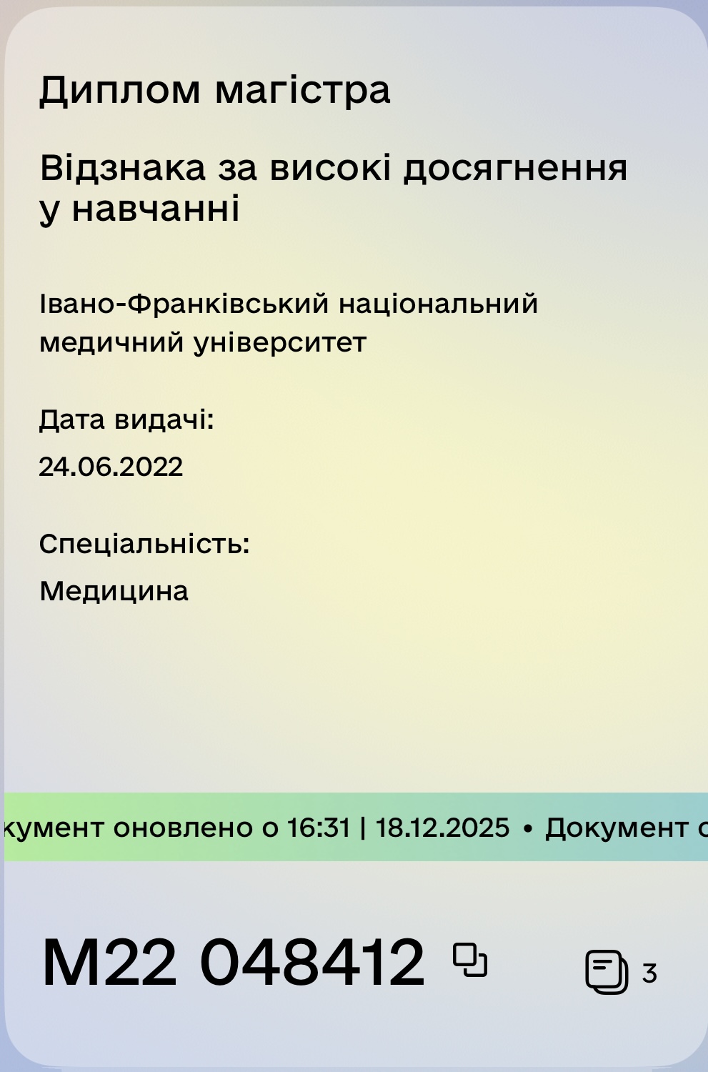 Опыт переводчика английского языка, практика на курсах изучения иностранного языка для самых младших; участвовала в программах обмена с американскими студентами, выступаю на Всеукраинских научных конференциях с англоязычными докладами, публикую статьи.