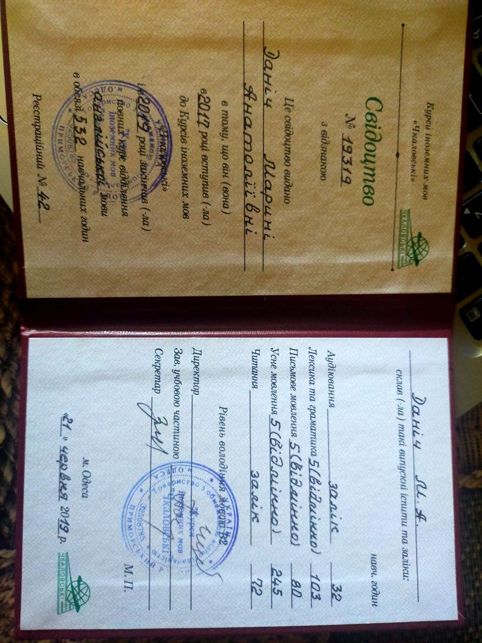 Я закончила Чкаловские курсы иностранных языков в 2017 году уровня B2 (красный диплом). Также я закончила в 2019 году курсы Poseidon Maritime English language school уровня B2. В 2022 году окончила магистратуру в Южноукраинском государственном педагогическом университете имени К.Д. Ушинского как преподаватель английского языка и продолжаю совершенствоваться в данном направлении. Помогаю изучить и усовершенствовать лексику, грамматику, чтение и разговорный английский язык дошкольникам/школьникам/студентам/взрослым. Помогаю подготовиться школьникам к ДПА (ДПА) 4, 9 классов и малышам в подготовке к поступлению в первый класс. Готова проводить уроки у себя дома, выезжать к учащимся на дом или, при необходимости, использовать видеосвязь.