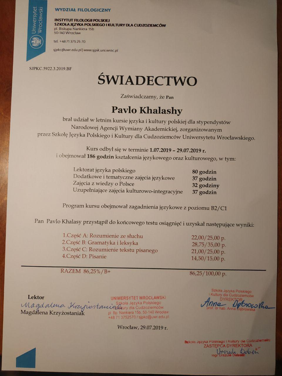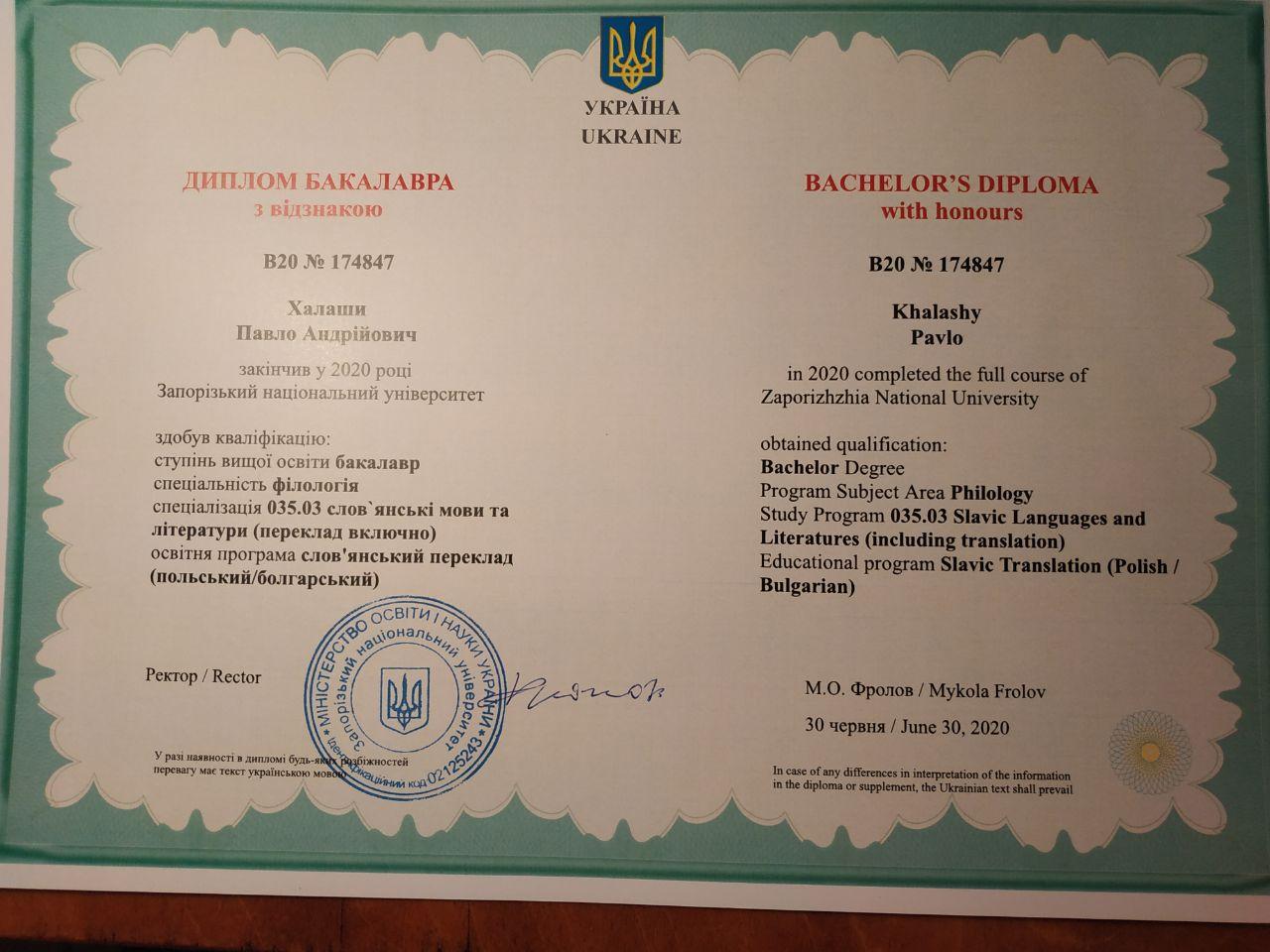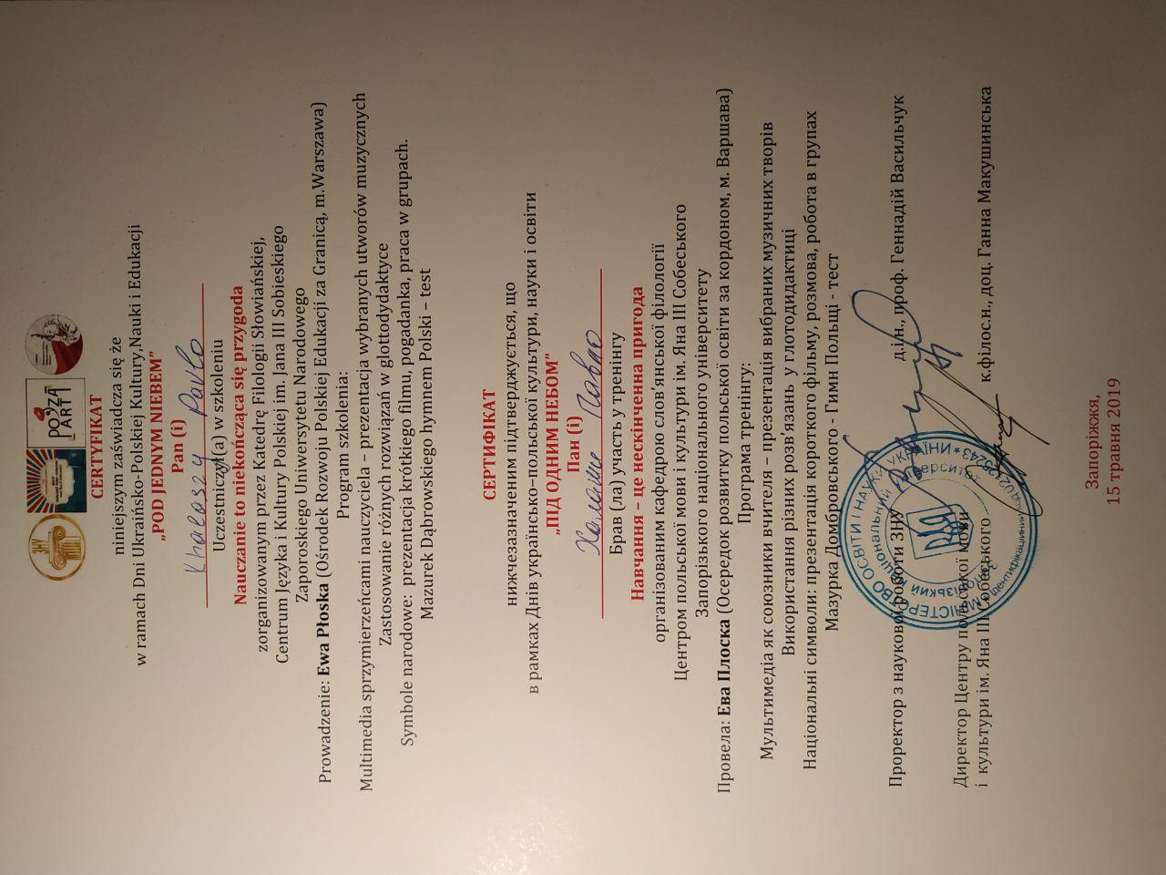 Работаю учителем польского языка в Запорожском многопрофильном лицее "Перспектива" и курсах "Образование в Европе". Я окончил Запорожский национальный университет (филология: переводчик польского языка) с красным дипломом. Два раза ездил на практику во Вроцлавский университет. Прошел летний курс польского языка и культуры во Вроцлаве и получил сертификат на уровне В2/С1. Учился семестр в Естественно-гуманитарном университете в г. Седльце по программе POLONISTA.