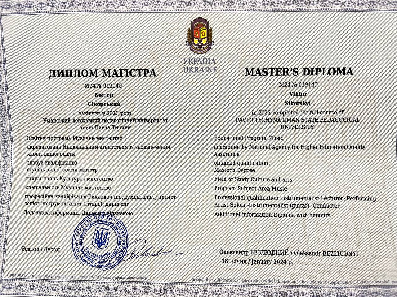 Первый преподавательский опыт получил работая в Новоукраинской ДМШ, где работал 1,5 года, будучи еще студентом 3 курса Кировоградского музыкального колледжа. Позже после окончания Музыкального училища, на основе данных впечатлений преподавания в школе пошел дальше учиться в Киевский педагогический университет имени Бориса Гринченко. На данный момент учусь на последнем курсе по классу гитары, и преподаю игру на классической, акустической, электро, бас, укулеле гитарах. На моих занятиях точно не будет скучно.