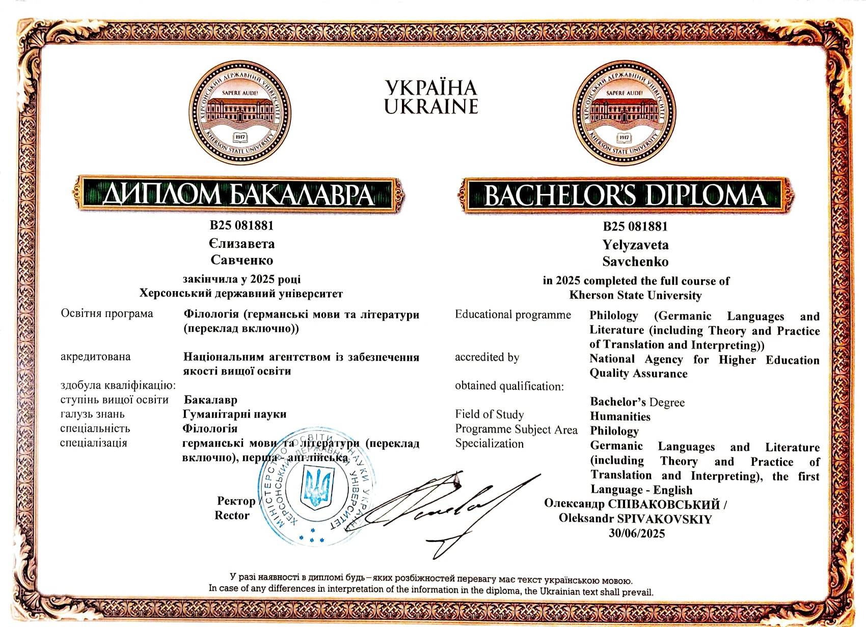 Уже более 4 лет я помогаю учащимся овладевать английским языком как репетитор. Мой опыт включает также работу преподавателем английского языка в частном саду. Все занятия провожу онлайн, используя разные платформы. Я с радостью работаю с детьми всех возрастов: 1-5 классы – 300 грн/час. 6-11 классы – 350 грн/час.