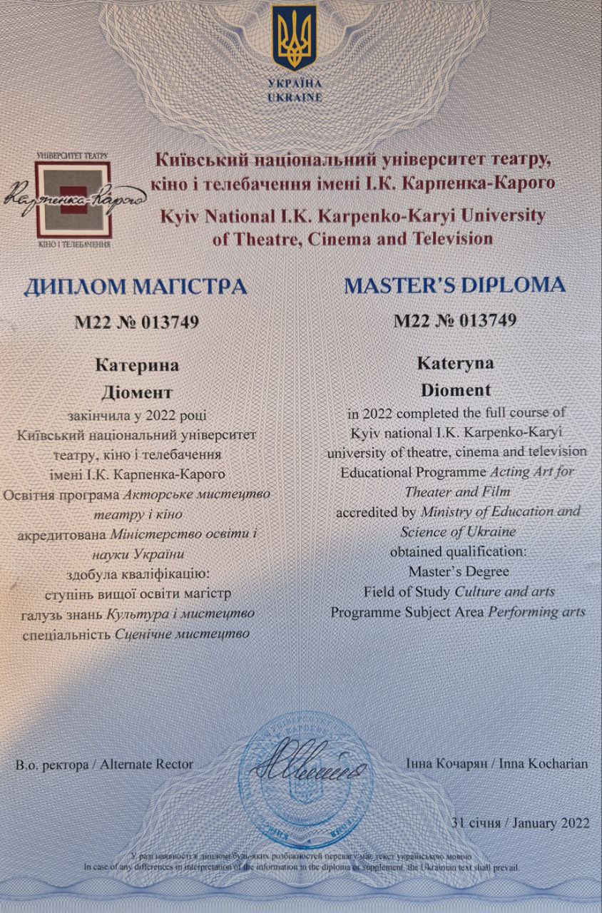 Акторка та викладачка акторської і ораторської майстерності. Працюю з абітурієнтами та дорослими, готую до вступу у вищі навчальні заклади. Основний формат — онлайн.