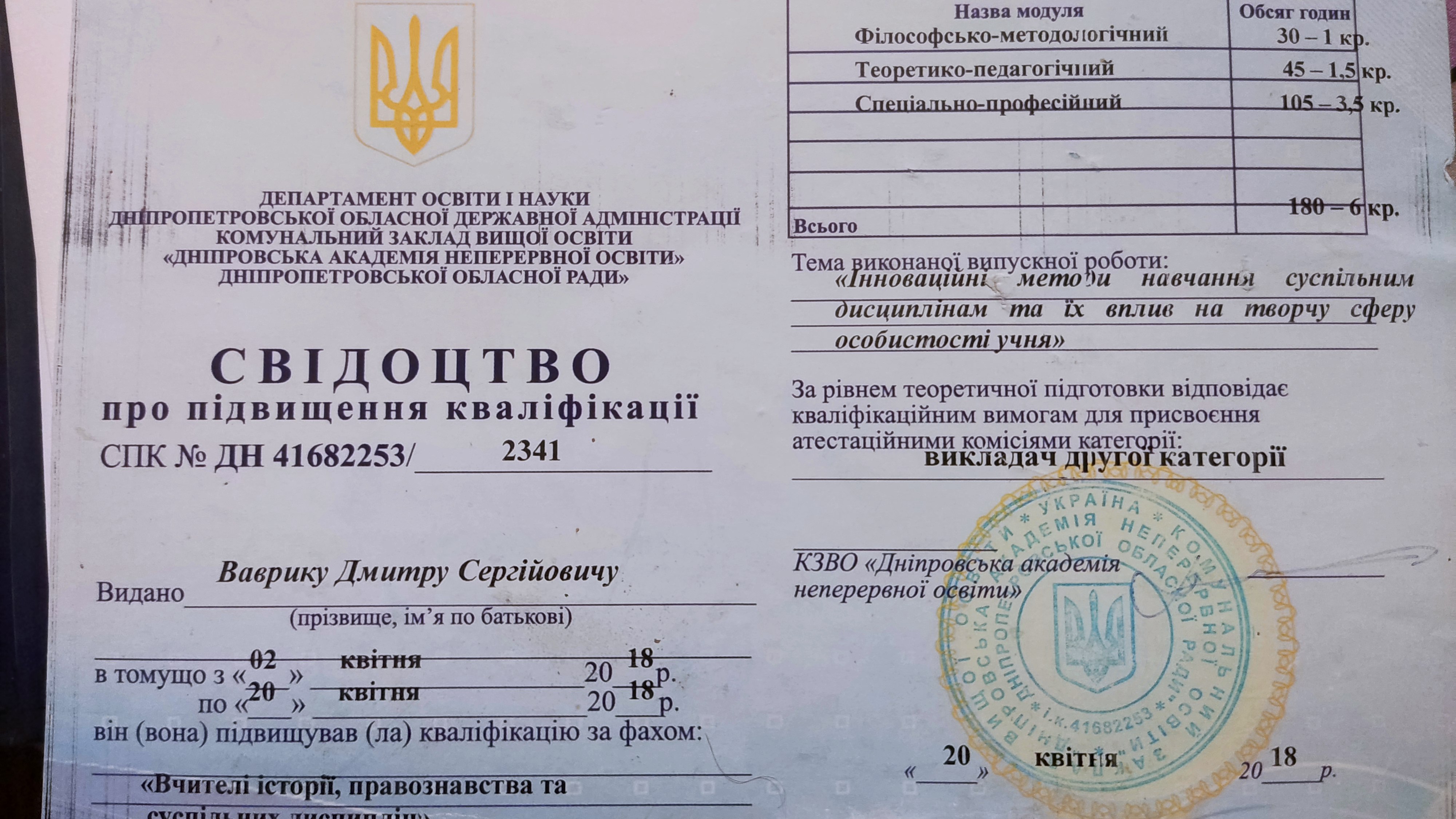 Деталі про досвід викладання: