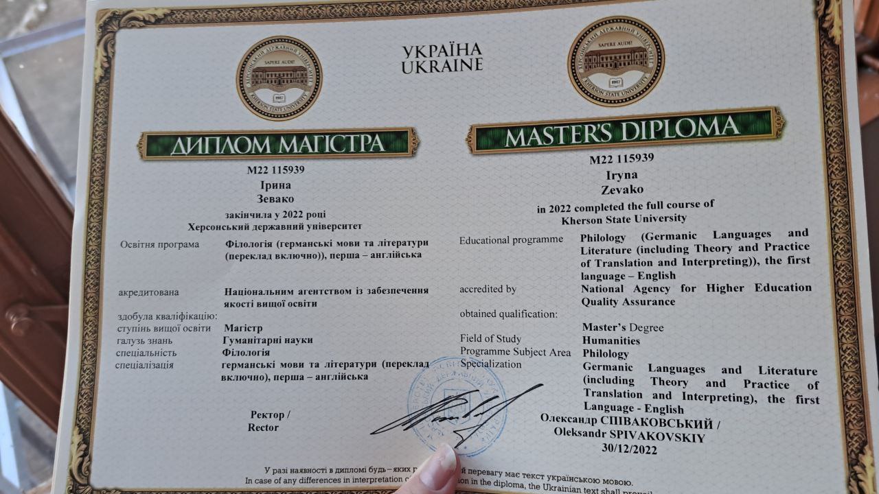 Вчила мову ще у школі. Потім вступила до Херсонського державного університету, закінчила за фахом учитель іспанської мови та зарубіжної літератури, учитель англійської мови. Зараз у дикреті, але дуже хотілося б розвиватися далі як репетитор.