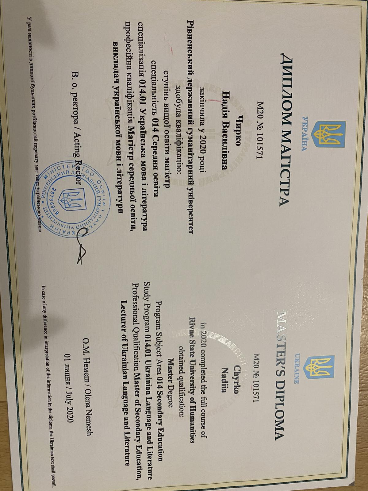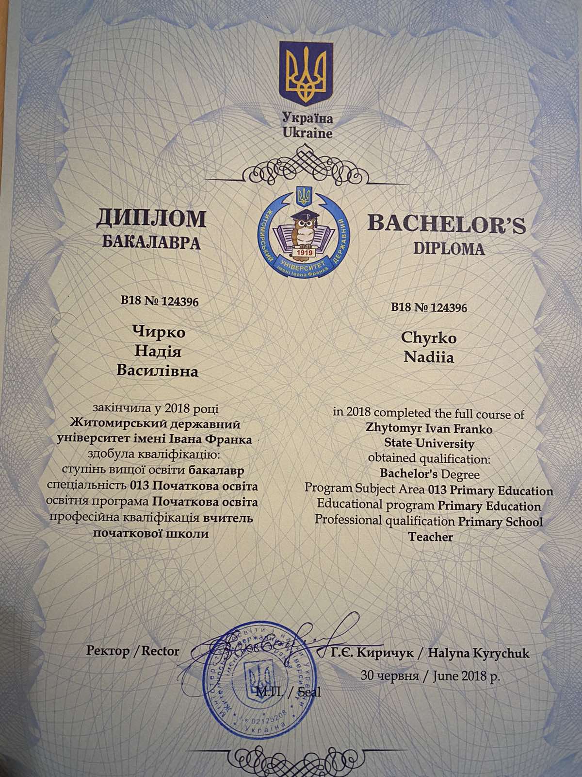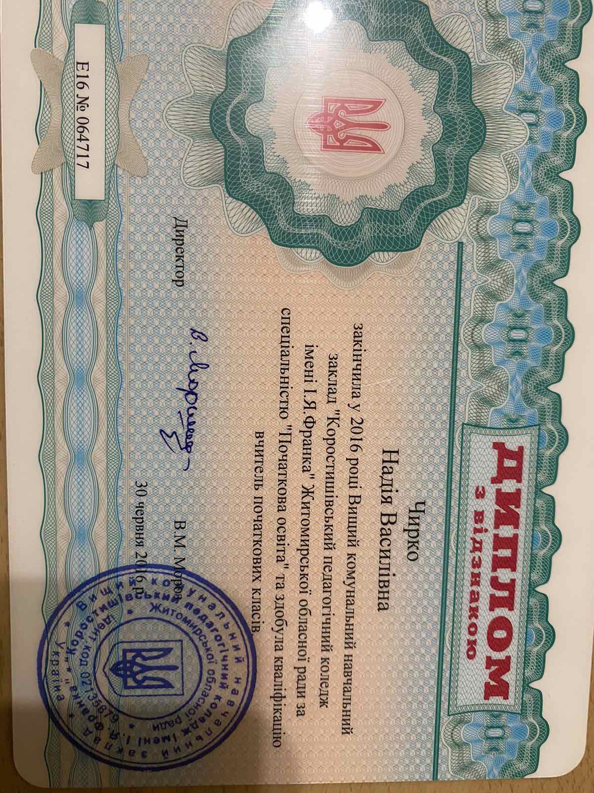 Розуміюся на специфіці навчання та виховання дітей молодшого шкільного віку. Завжди навчаюся новому, аби мої заняття були цікавими та корисними для дітей. Вимоглива до себе, тому люблю бачити результат своєї роботи.
