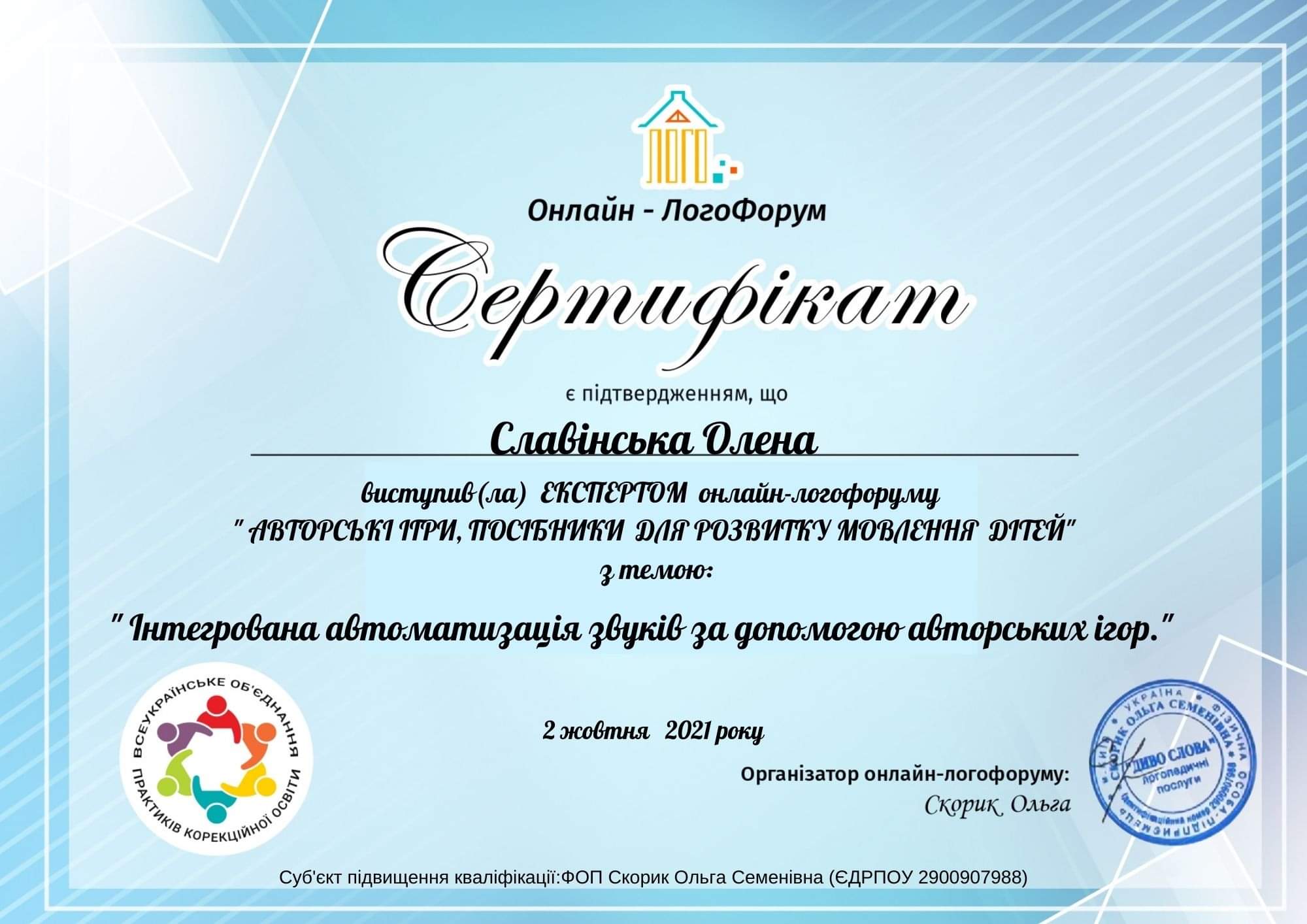 спікерка проектів для логопедів та батьків;