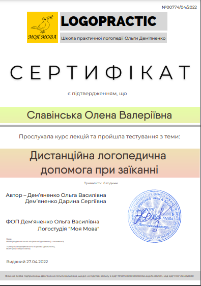Онлайн логопед, працюю через Телеграм та Месенджер. Досвід онлайн роботи - 3 роки, загальний логопедичний - 6 років