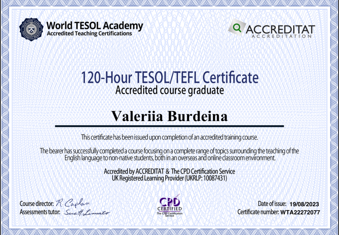 Мене звати Валерія, мені 19 років. Маю досвід викладання більше 2 років.