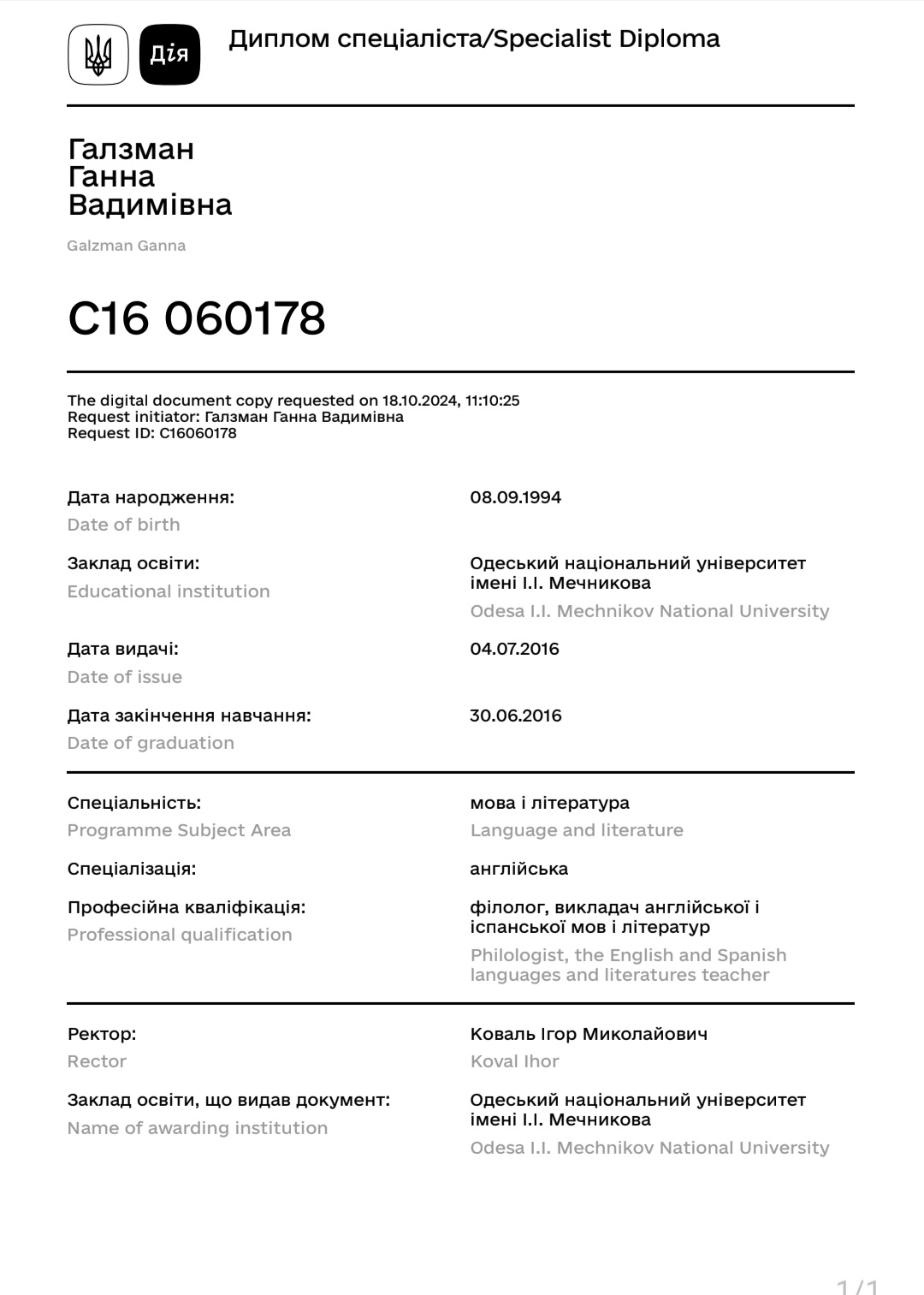 Я - філолог, викладач іноземних мов: англійська, іспанська, німецька та португальська. Подобається викладати, бачити результат своїх учнів.