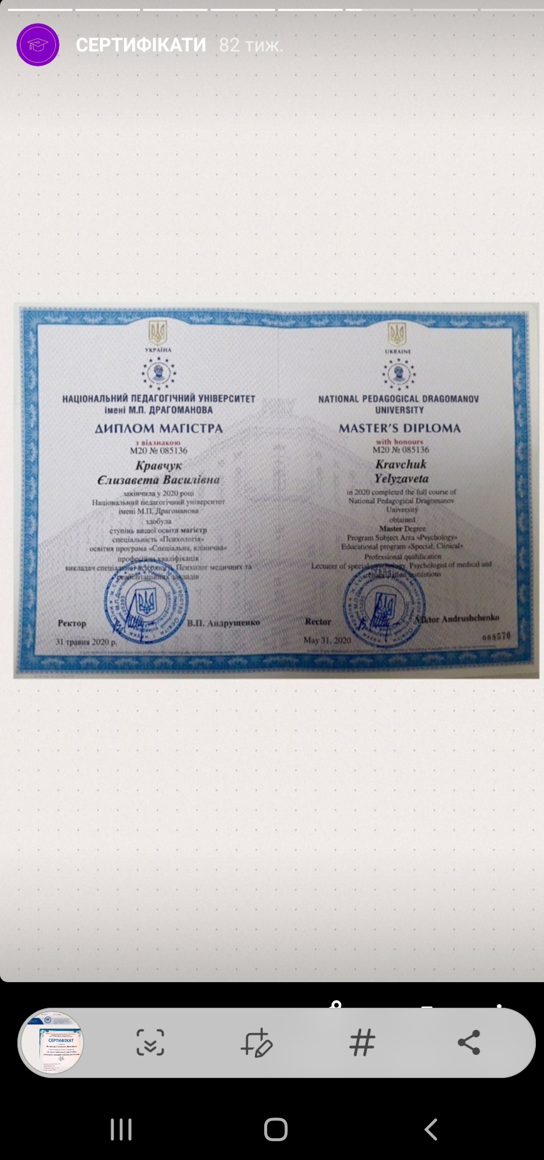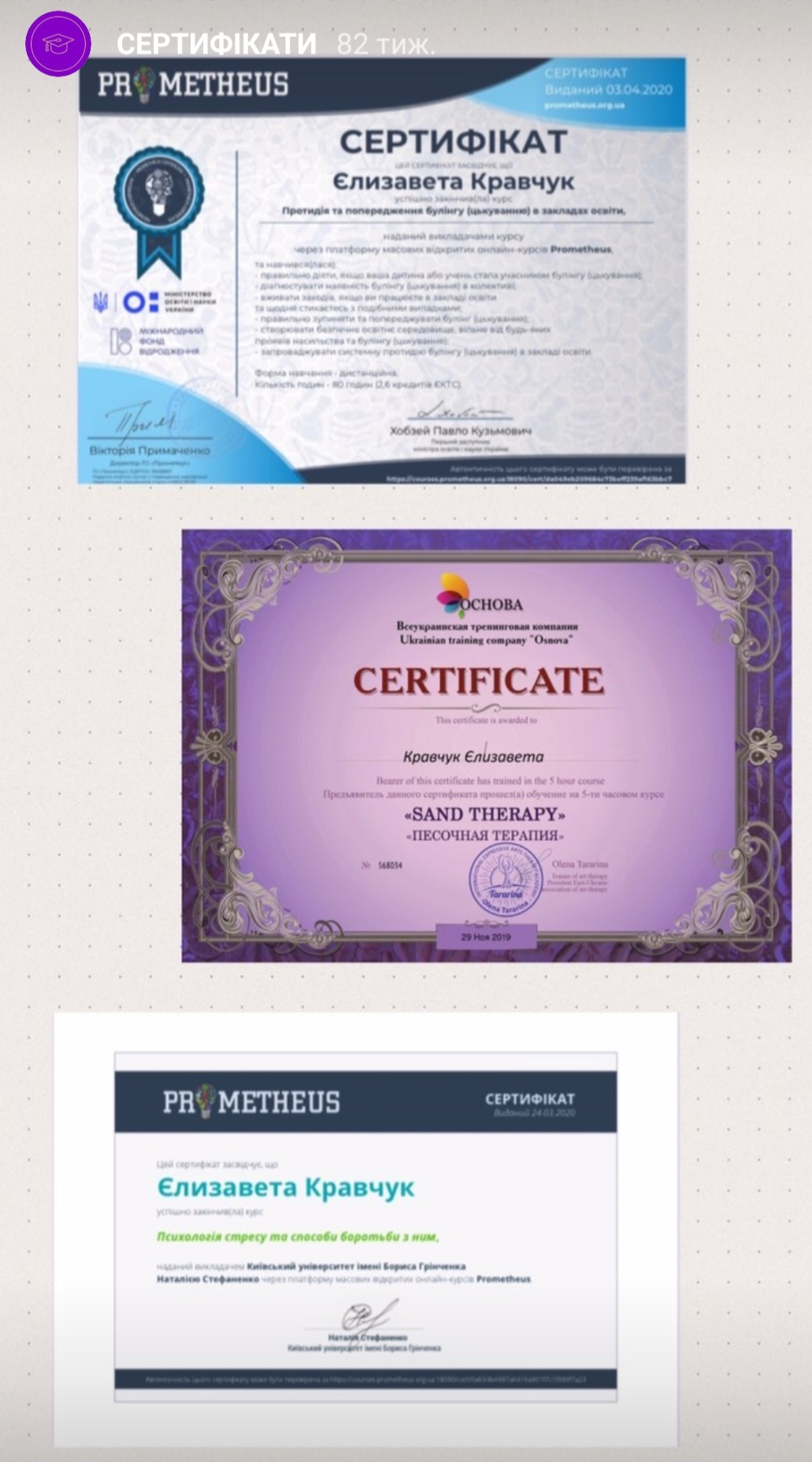 Вітаю. Мене звати Єлизавета Кравчук, я практичний психолог та сертифікований арт- терапевт. Я допоможу Вам вирішити Вашу проблему та стати кращою Версією себе.
