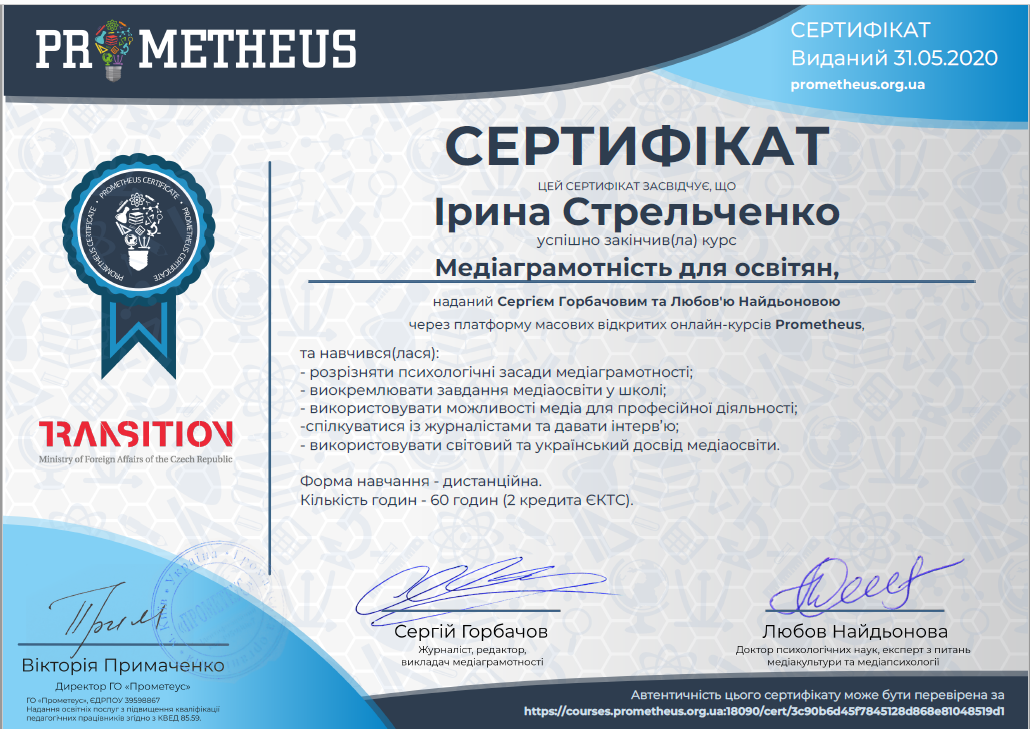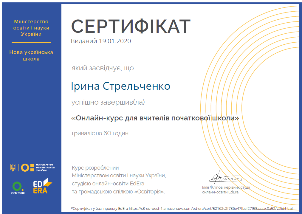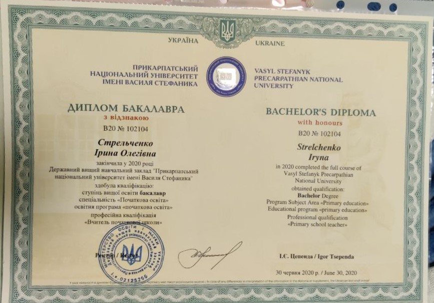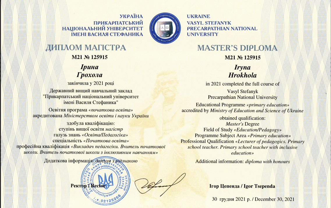Серед особистих якостей виокремлю: любов до дітей, відповідальність, знання сучасних методик викладання, ініціативність та креативність, творче мислення,працьовитість, грамотна мова, обізнаність з цифровий технологіями. Навчалася у Прикарпатському національному університеті ім. В.Стефаника (2016-2021р.) за спеціальністю "Початкова освіта". Використовую новітні інтерактивні та ігрові методи навчання