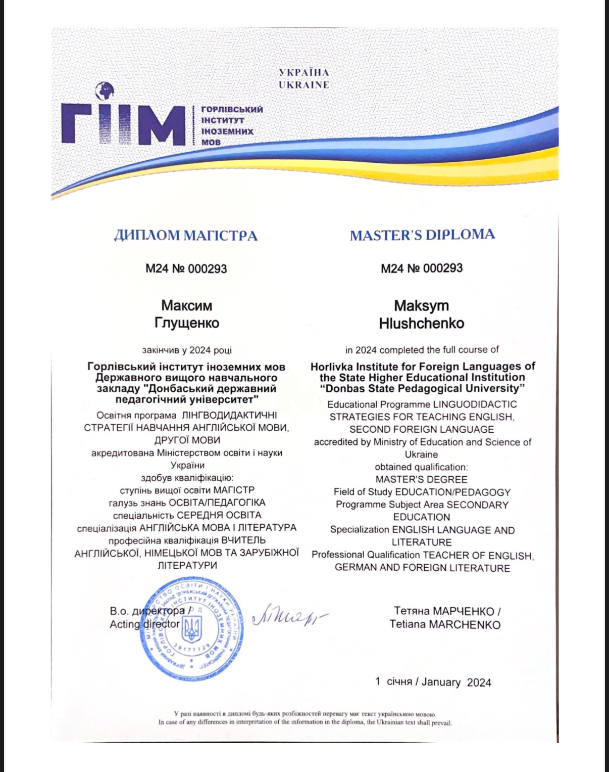 На своїх заняттях використовую індивідуальний підхід до кожного учня, пояснюю матеріал доступно та зрозуміло. Особливу увагу приділяю розвитку розмовних навичок, граматиці та практичному застосуванню мови.