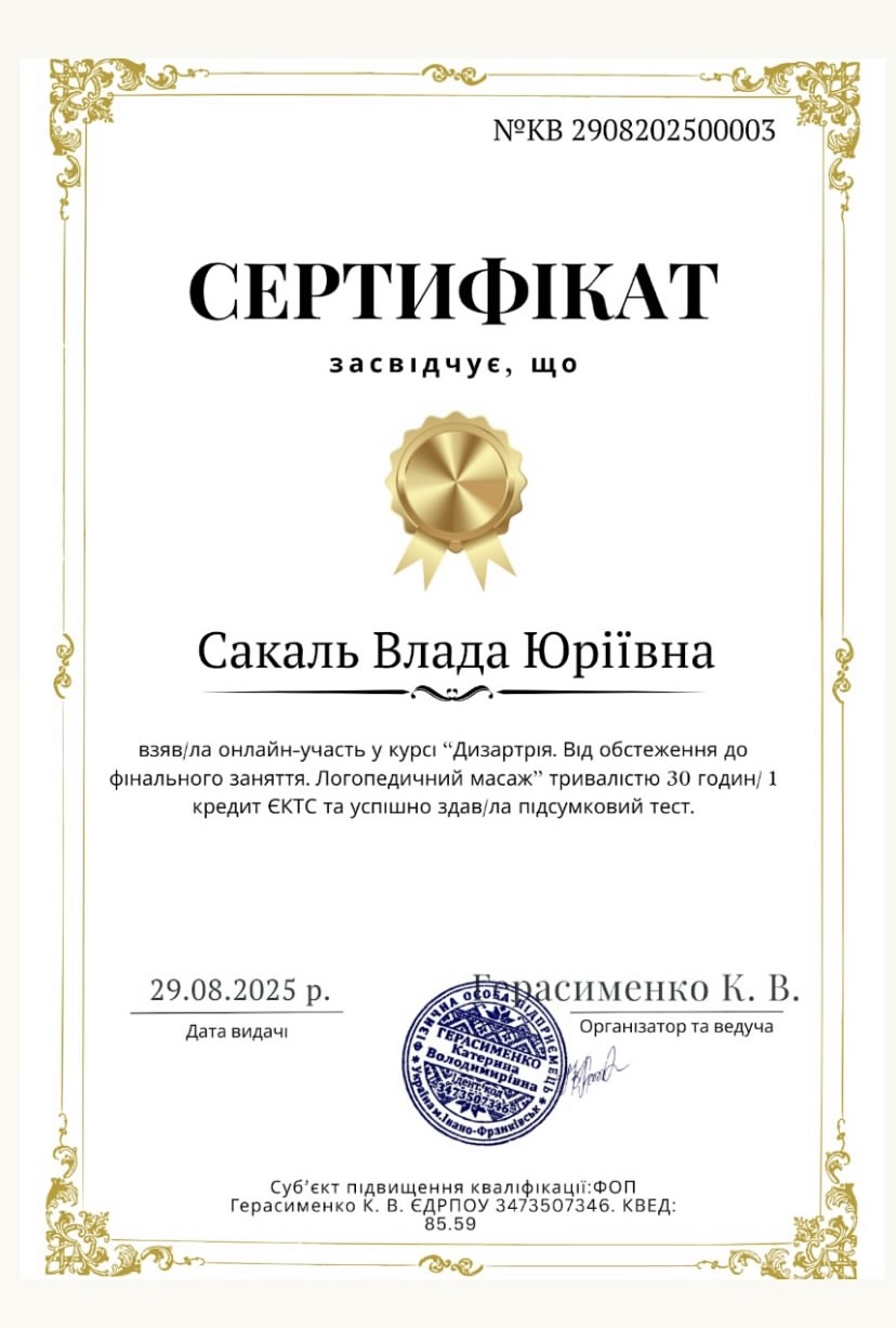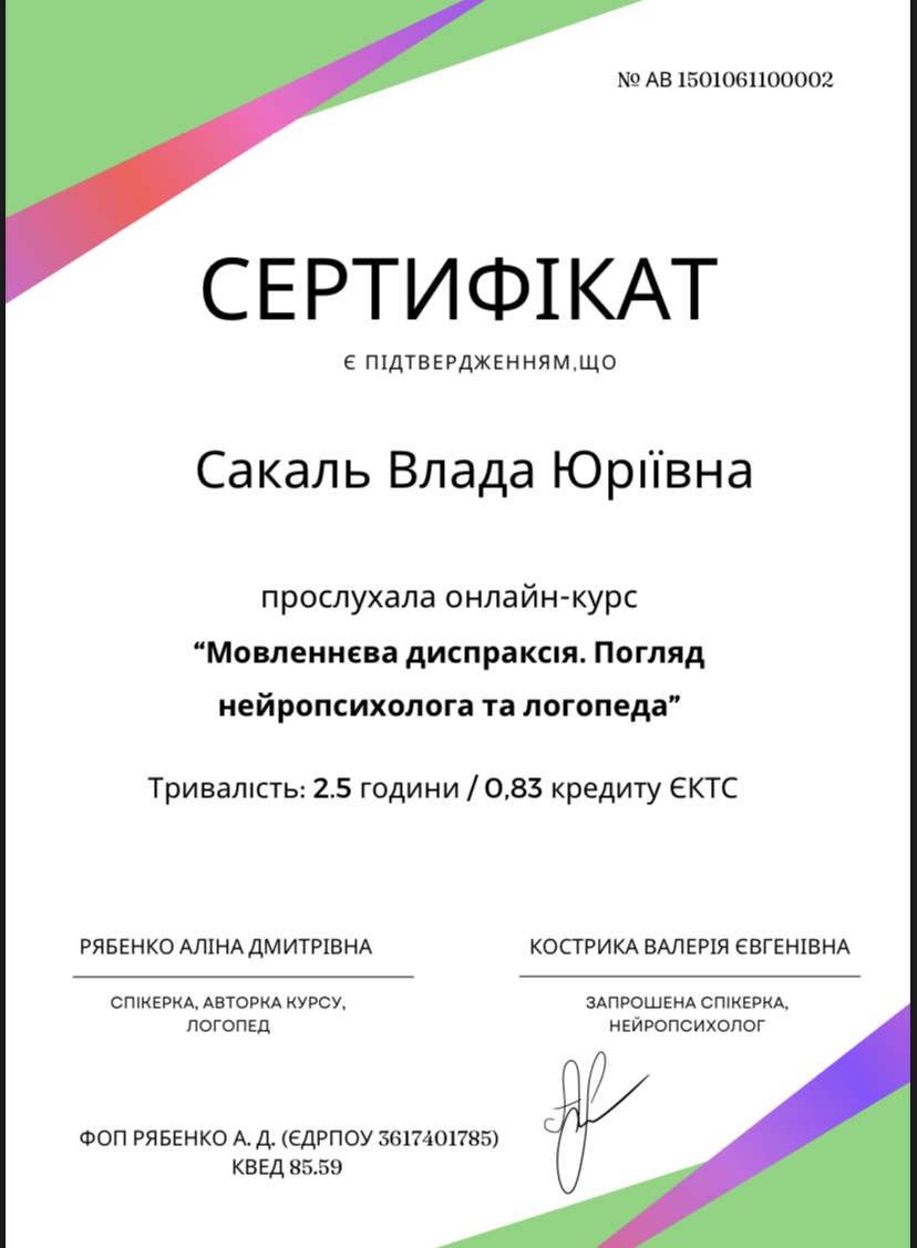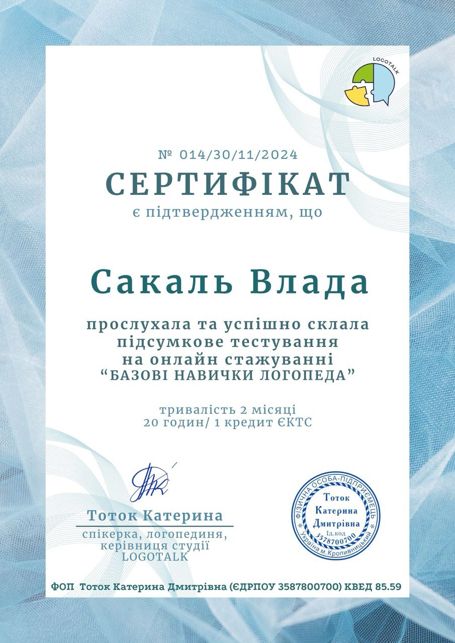 Я-Влада, онлайн-логопед) Навчаюсь у ЦДУ імені Володимира Винниченка на 4 курсі на спеціальності - «Спеціальна освіта»(логопед-дефектолог). Регулярно проходжу різноманітні курси та стажування для удосконалення та покращення умінь та навичок в роботі. Веду логопедичний блог в інстаграмі де купа корисної та цікавої інформації